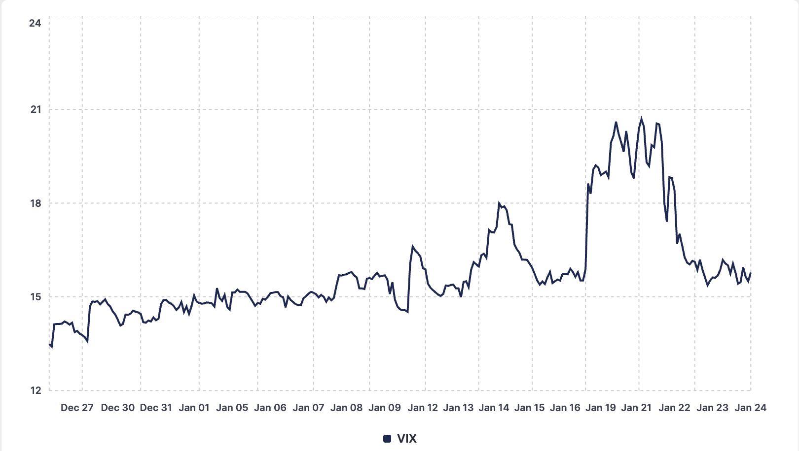 However, after Trump backed away from the tariff threats and ruled out military action in Greenland during his remarks at the World Economic Forum in Davos on January 21, tensions eased rapidly. Volatility subsided as the VIX fell to 15 by January22.  TheS&P500reboundedto6,913.35onJanuary22and6,915.61on January23.