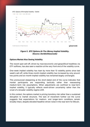 Inthiscontext,theoptionsmarketispricingtransitoryriskratherthanasustained disruption to market structure. The lack of movement further out the curve suggests that expectations for medium- and longer-term conditions remain broadlyintact,despiteelevatedheadline-drivennoiseintheneartermforBitcoin.