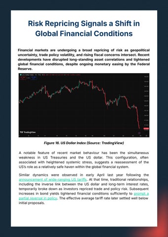 Financial markets are undergoing a broad repricing of risk as geopolitical uncertainty,tradepolicyvolatility,andrisingfiscalconcernsintersect.Recent developments have disrupted long-standing asset correlations and tightened global financial conditions, despite ongoing monetary easing by the Federal Reserve.