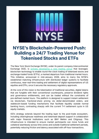 ● NYSEʼsBlockchain-PoweredPush: Buildinga24/7TradingVenuefor TokenisedStocksandETFs