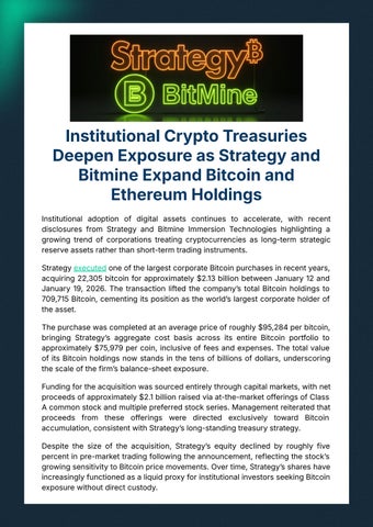 Institutional adoption of digital assets continues to accelerate, with recent disclosures from Strategy and Bitmine Immersion Technologies highlighting a growing trend of corporations treating cryptocurrencies as long-term strategic reserveassetsratherthanshort-termtradinginstruments.