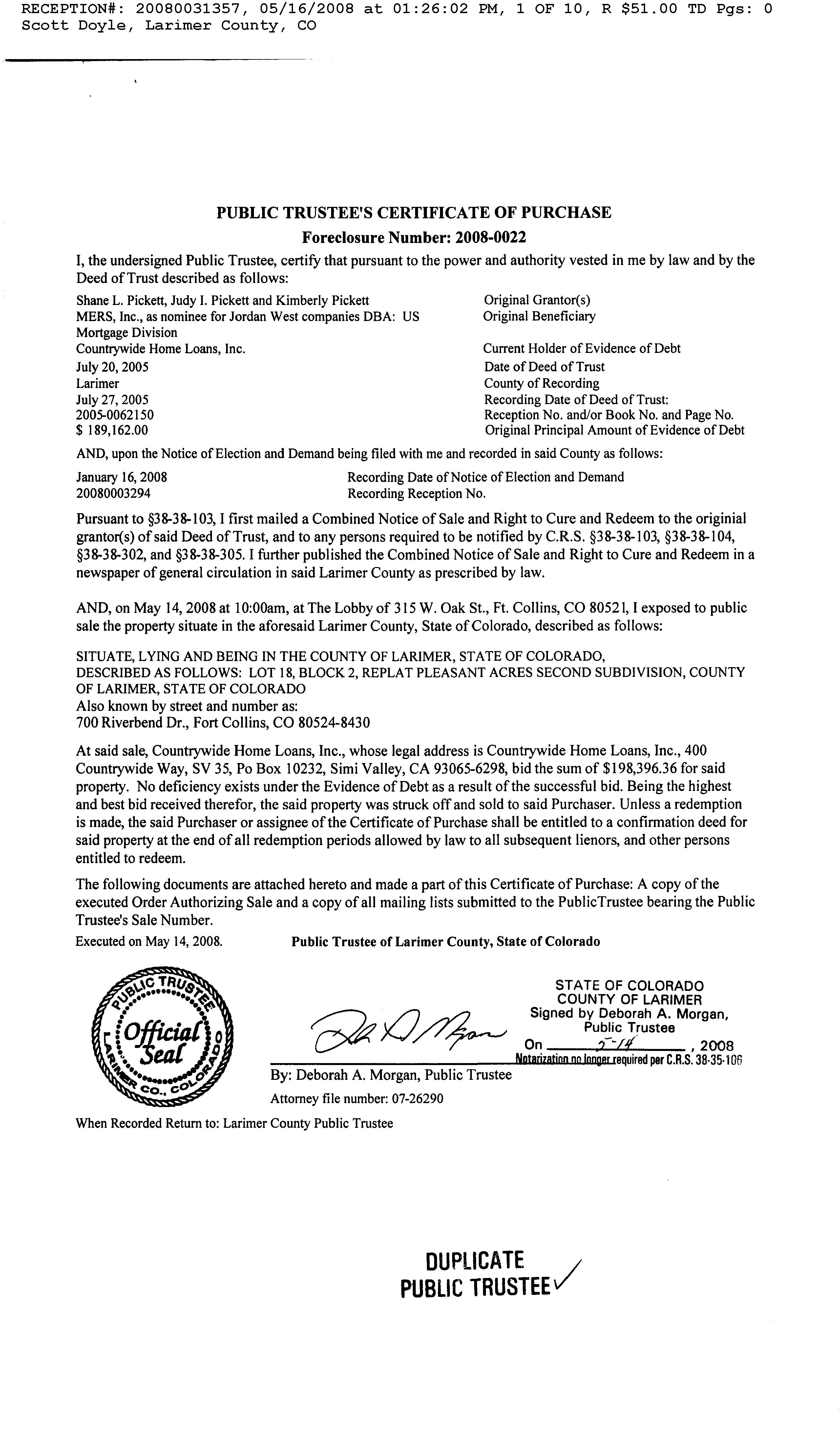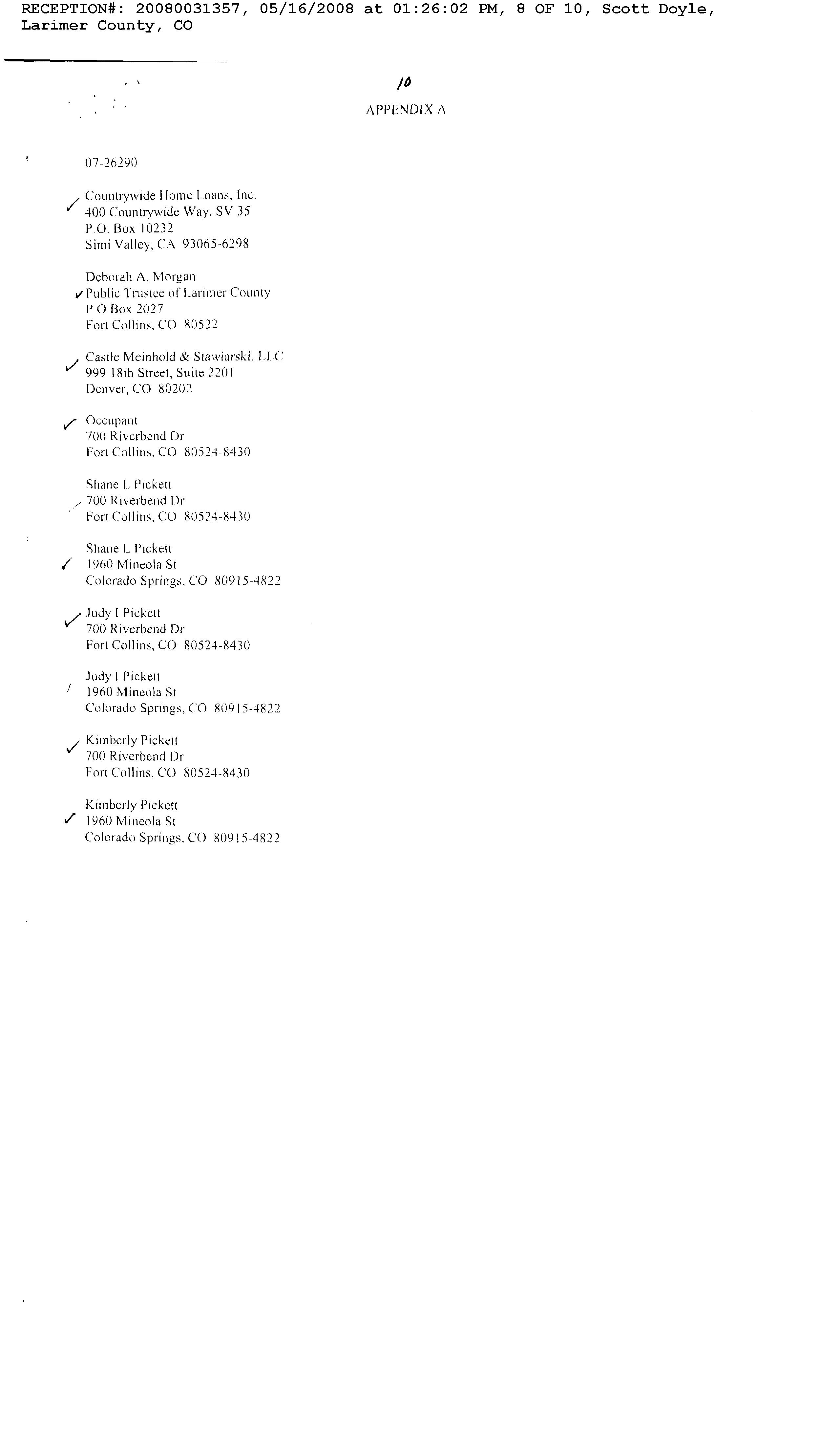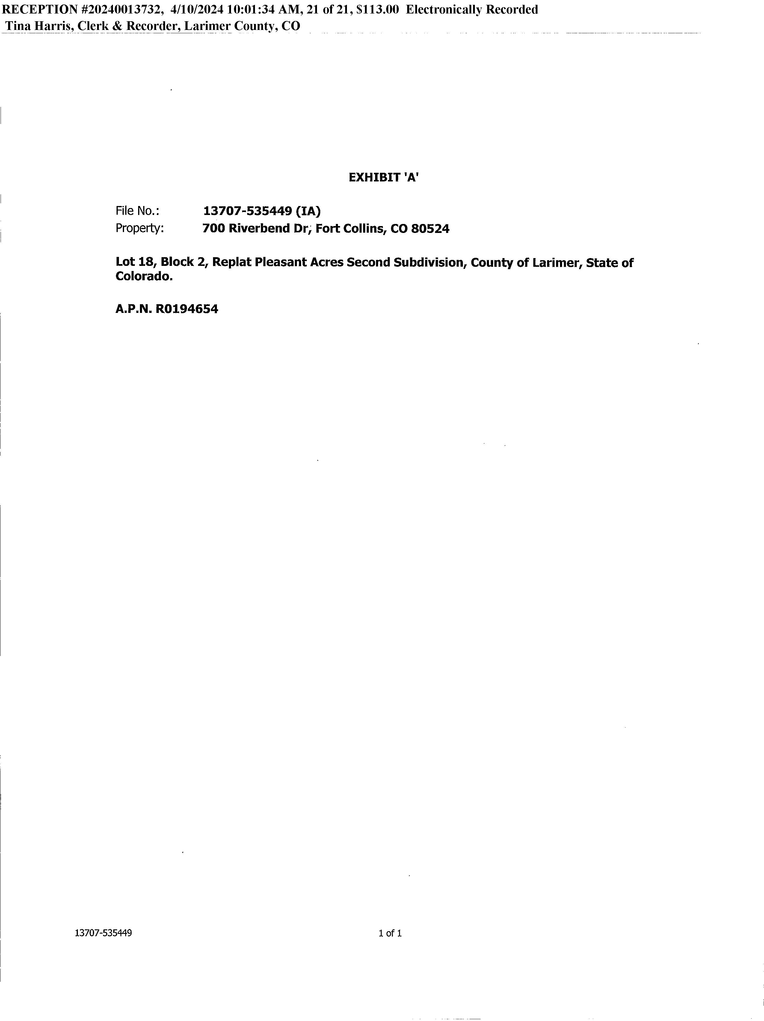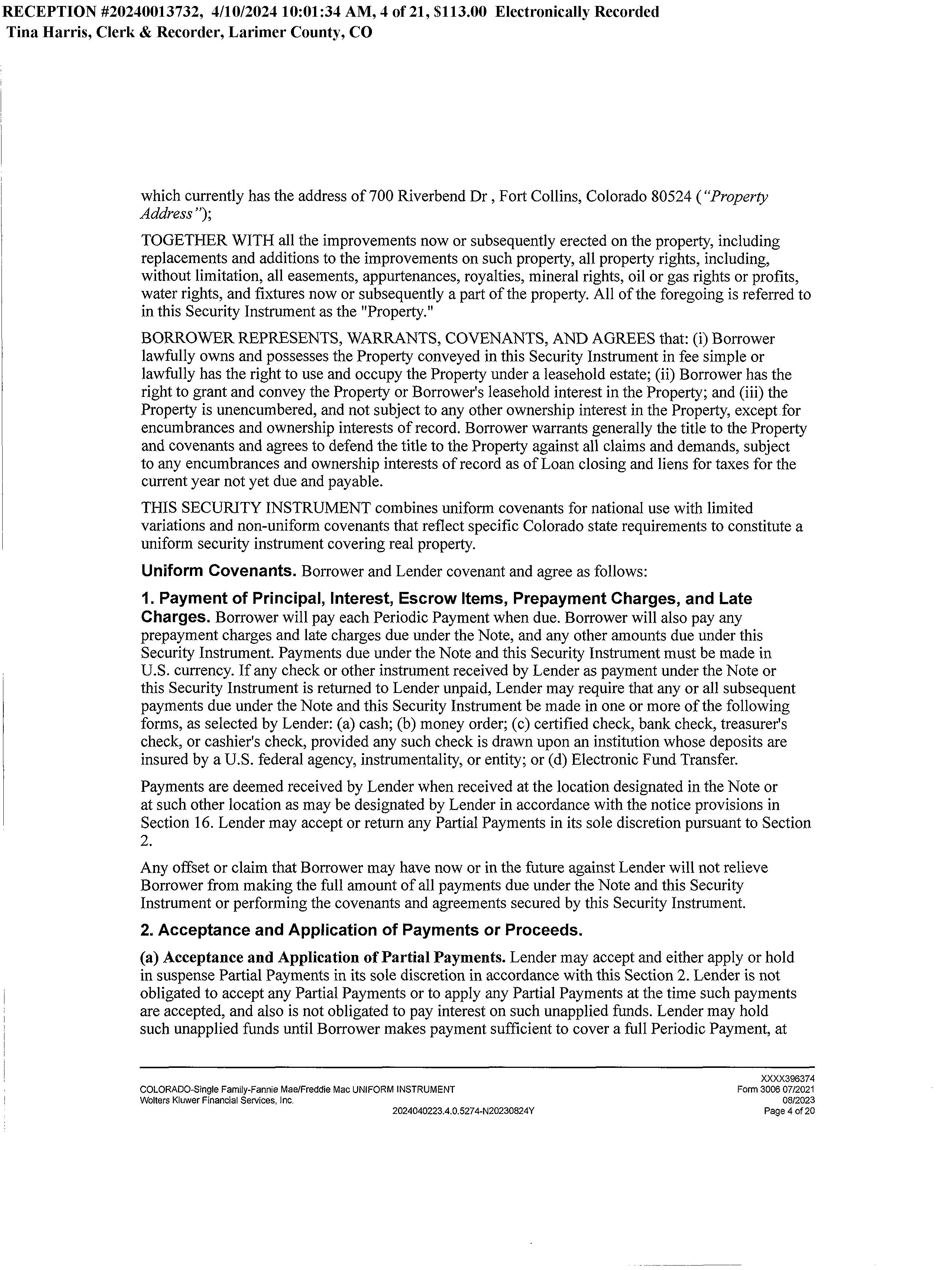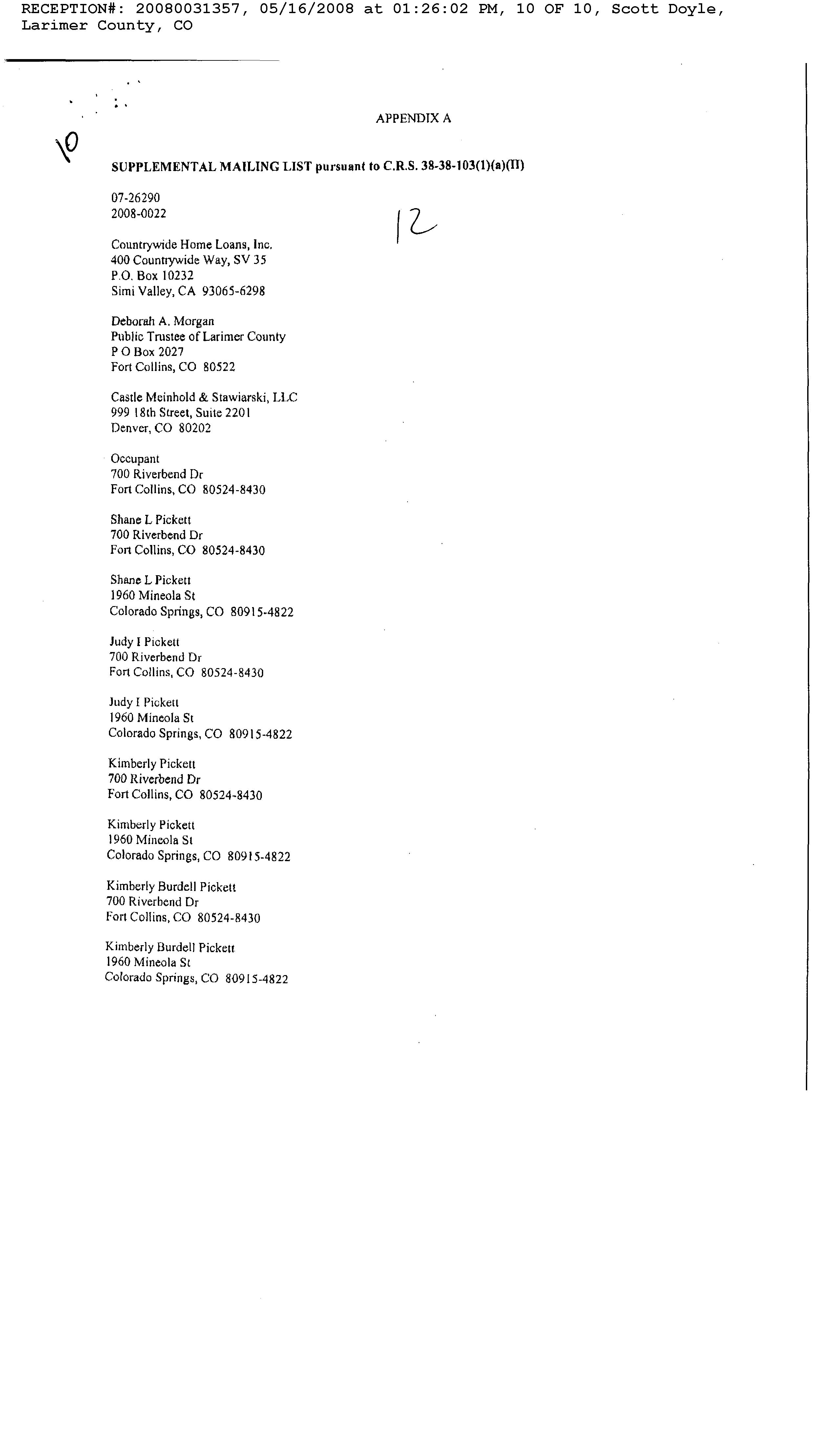 Mailing Address : 700 Riverbend Dr, Fort Collins CO 80524-8430 R007