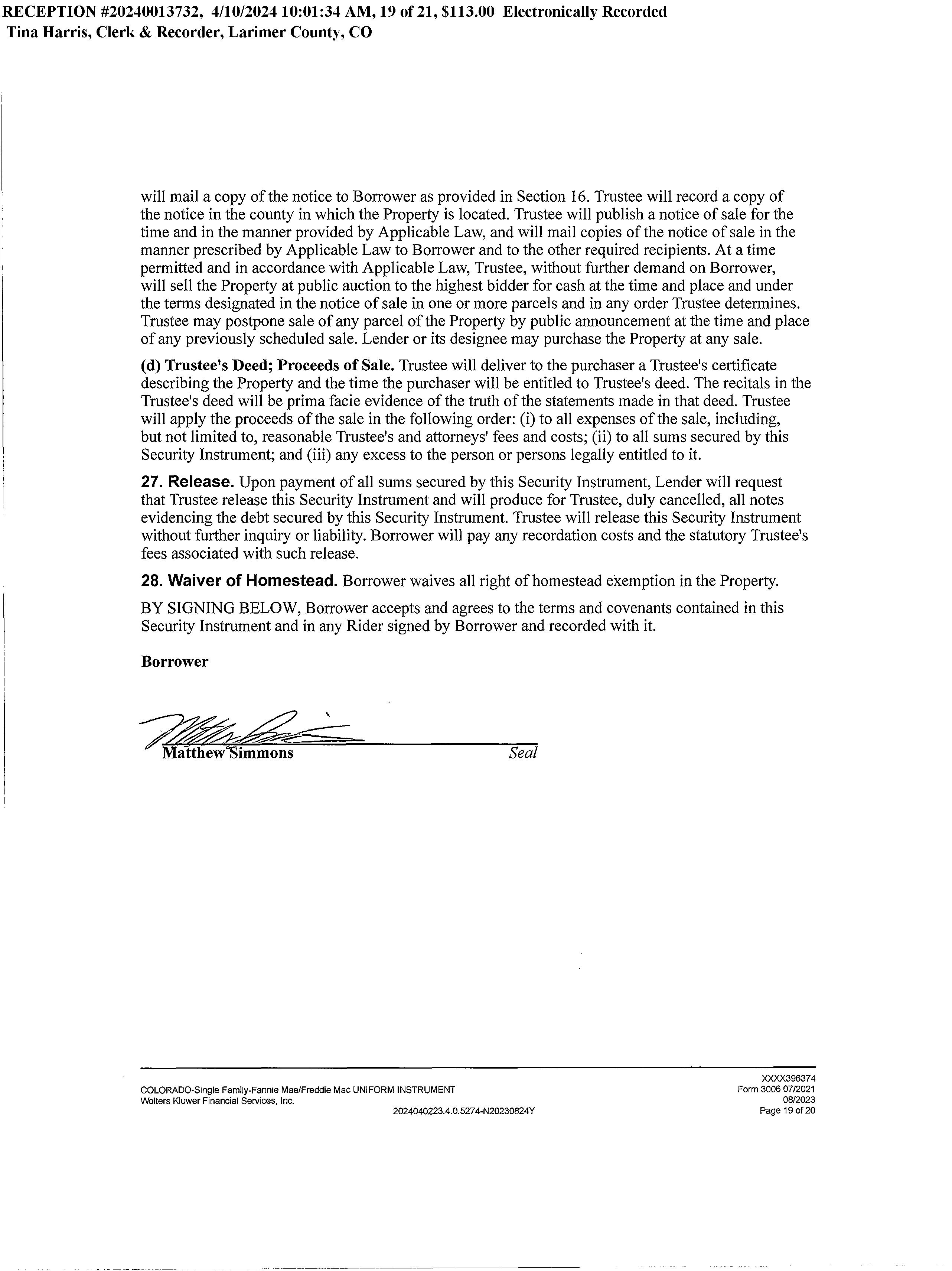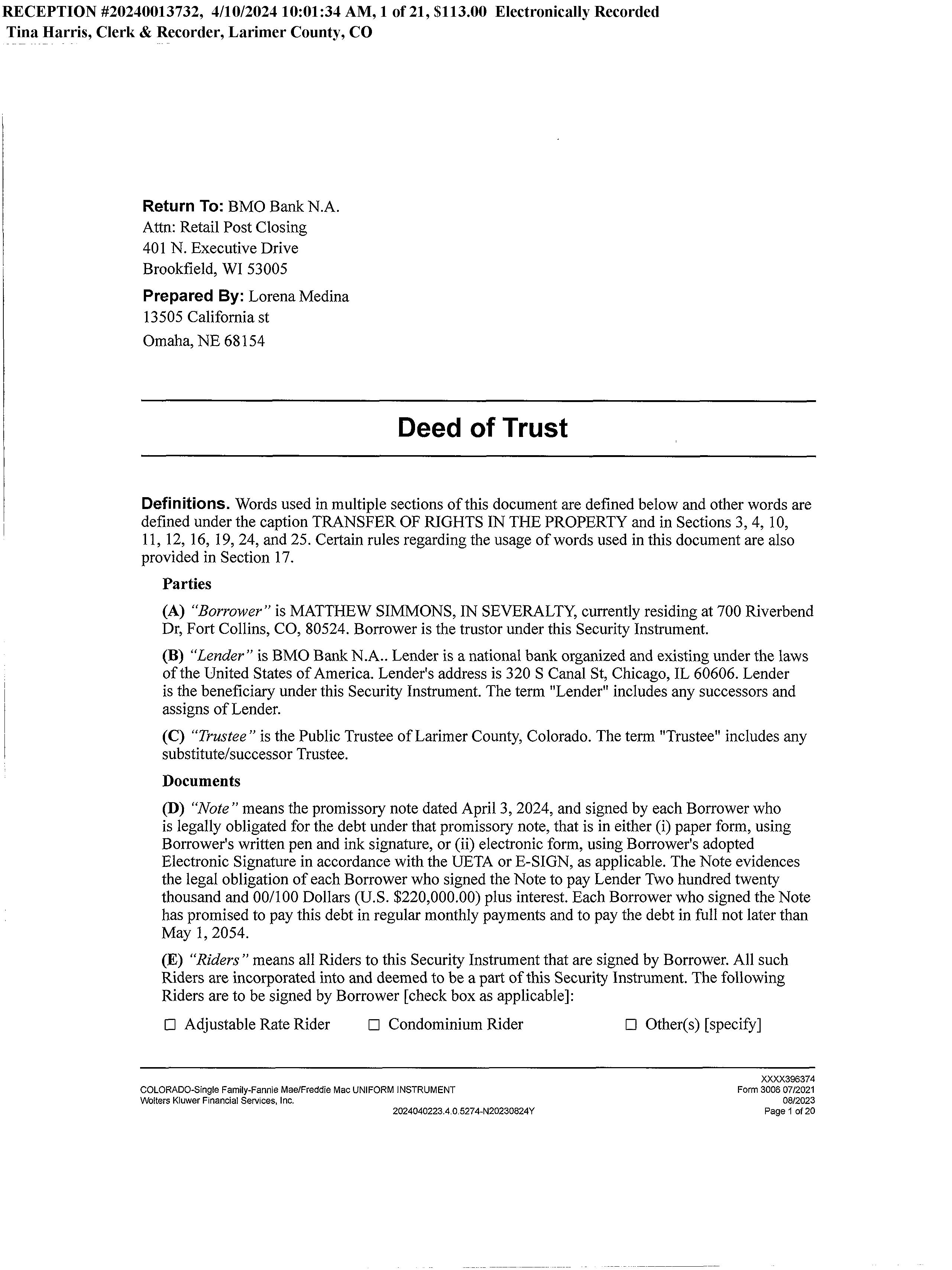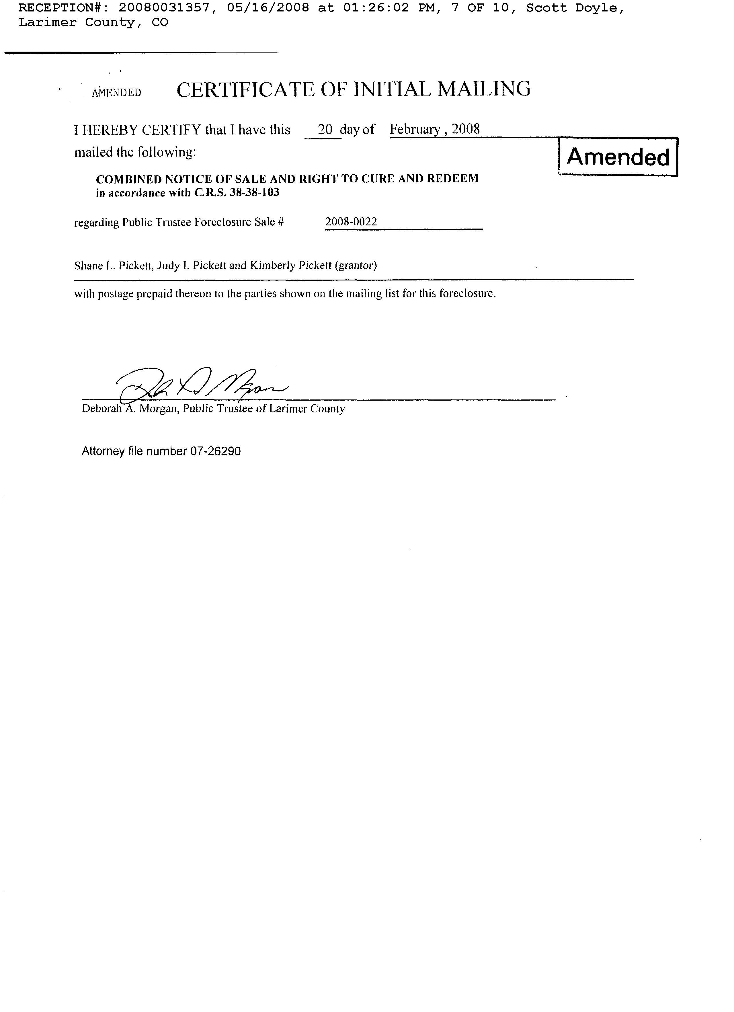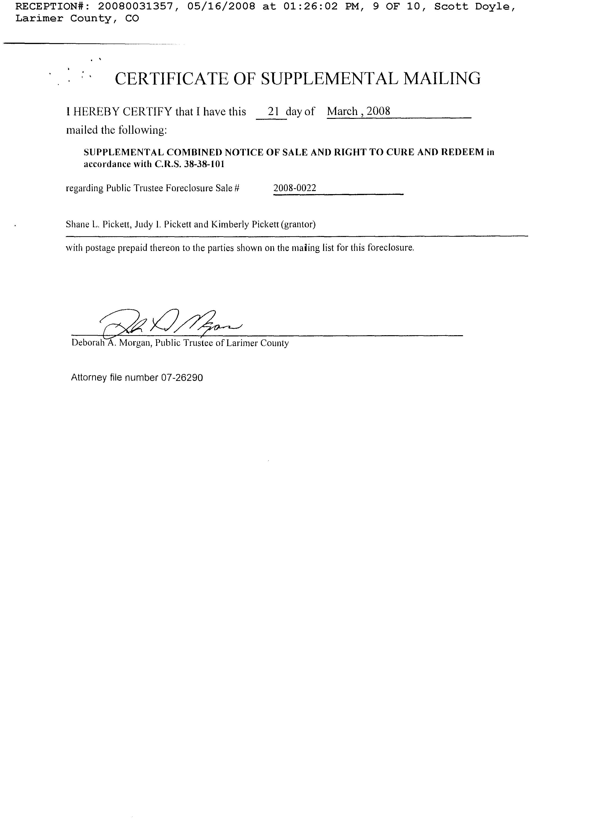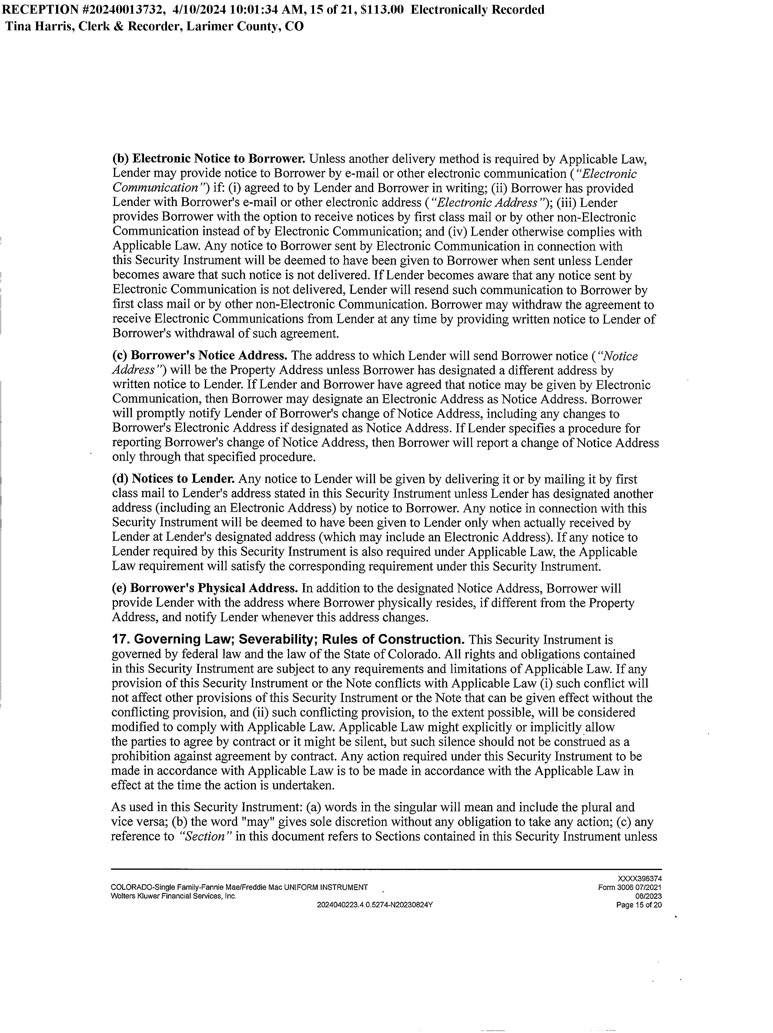 Mailing Address : 700 Riverbend Dr, Fort Collins CO 80524-8430 R007
