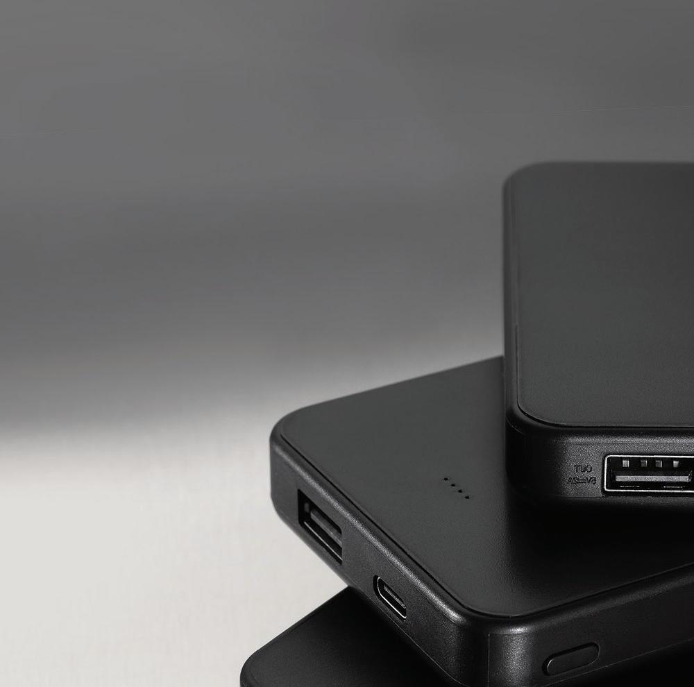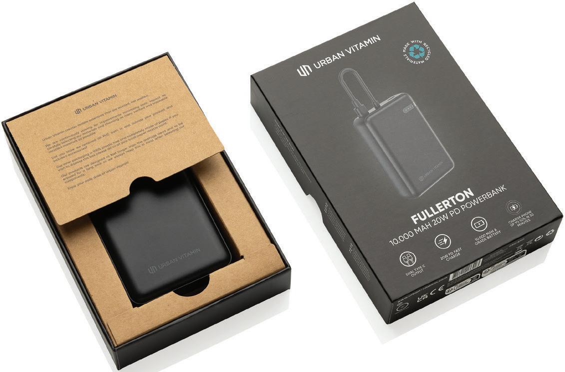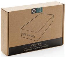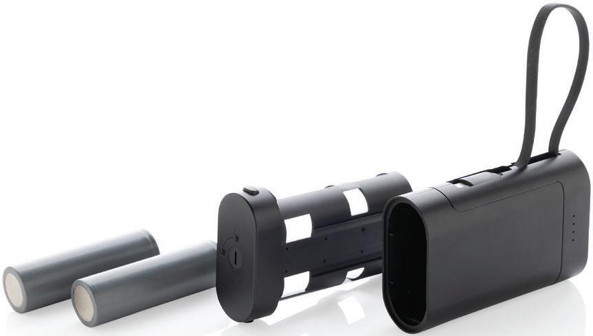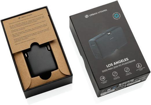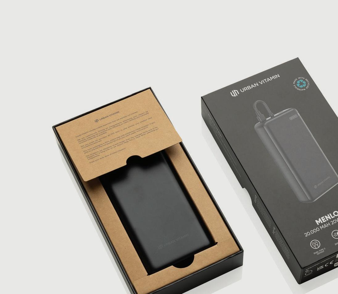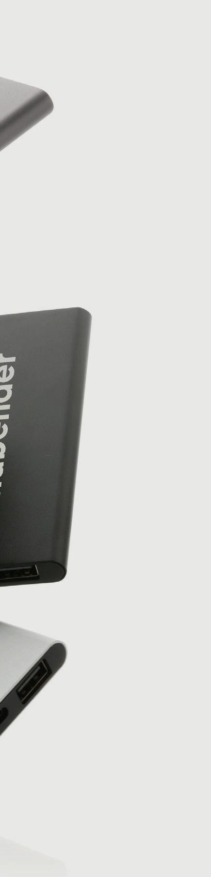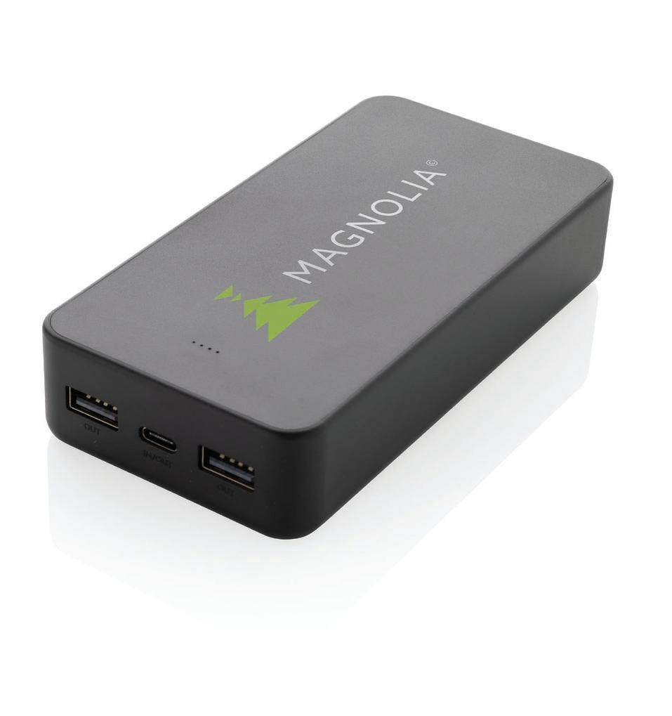 Recycled Polycarbonate • 12W • Charges your phone up to 2 times • USB output(s) • USB C port • Type-C charging connector(s) • Charging indicator • Approved as carry-on luggage • Can charge other devices while it charges itself • Loads 3 device(s) simultaneously Size