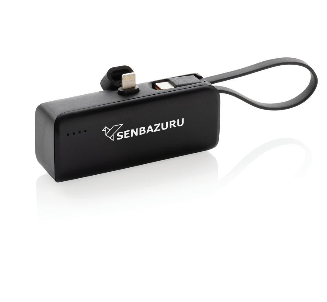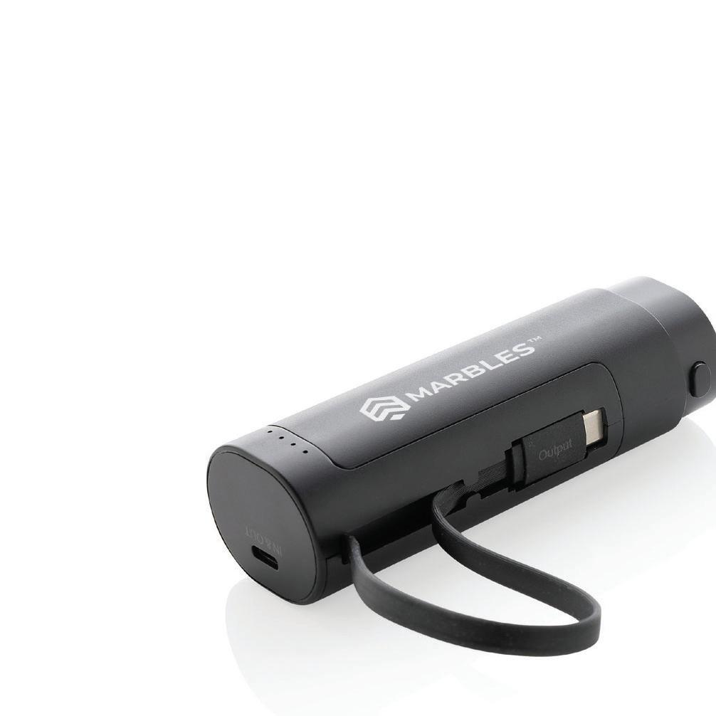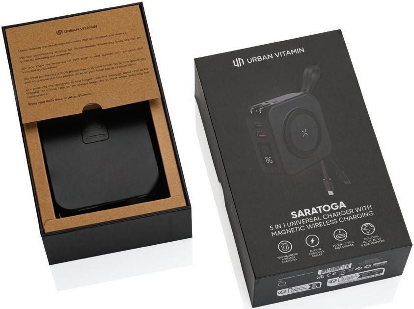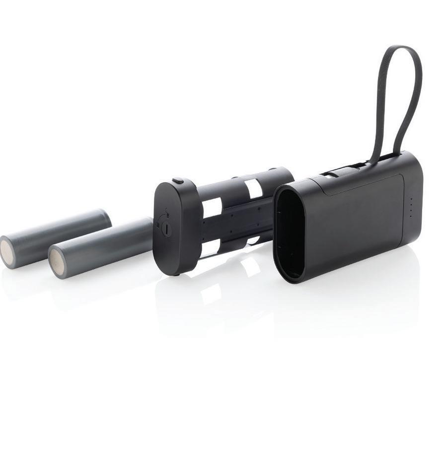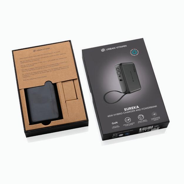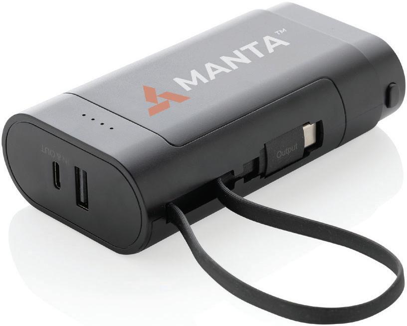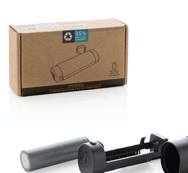 Recycled Polycarbonate • 12W • Charges your phone up to 2 times • USB output(s) • USB C port • Type-C charging connector(s) • Charging indicator • Approved as carry-on luggage • Can charge other devices while it charges itself • Loads 3 device(s) simultaneously Size