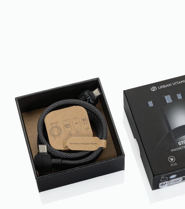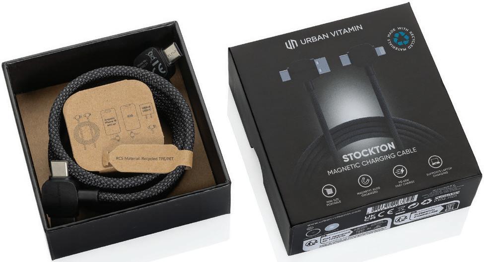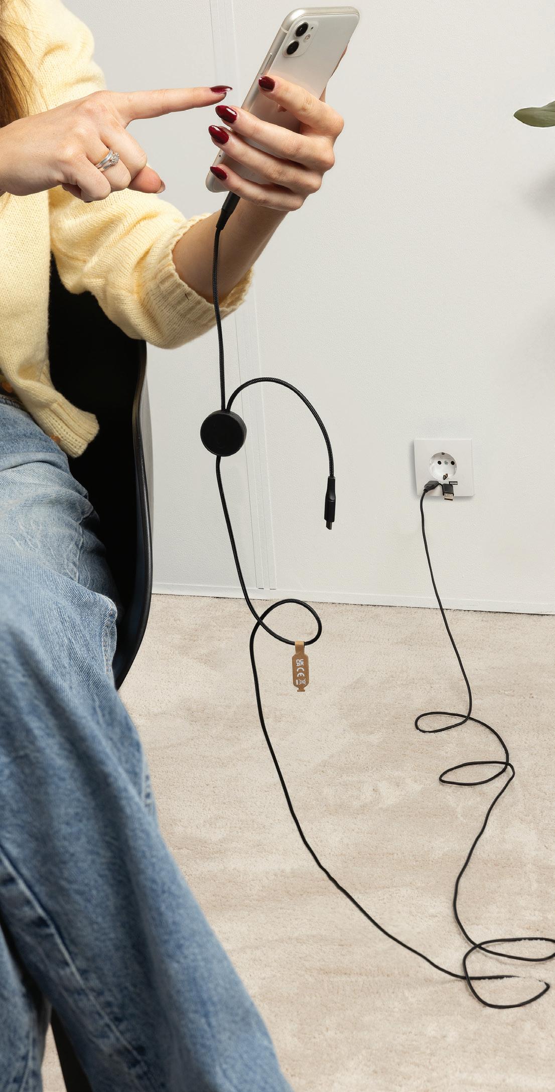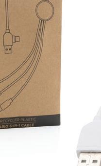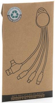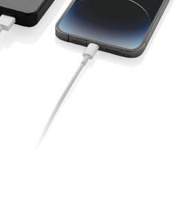 Recycled TPE • Max current 5V/2A • Lightning Output • USB C port • 120 charging cable • charging connector(s) Size 120 x 2,6 cm Max. printsize 20 x 15 mm Pad print