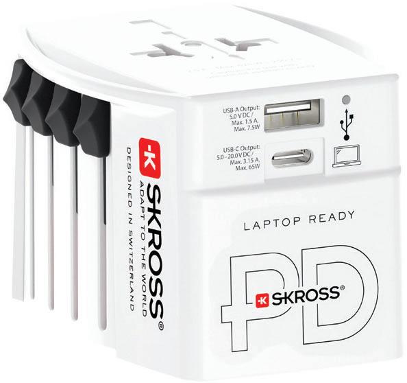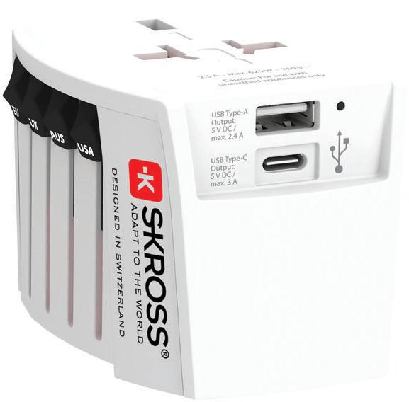 SKROSS world travel adapter MUV 2-pole with USB A and C