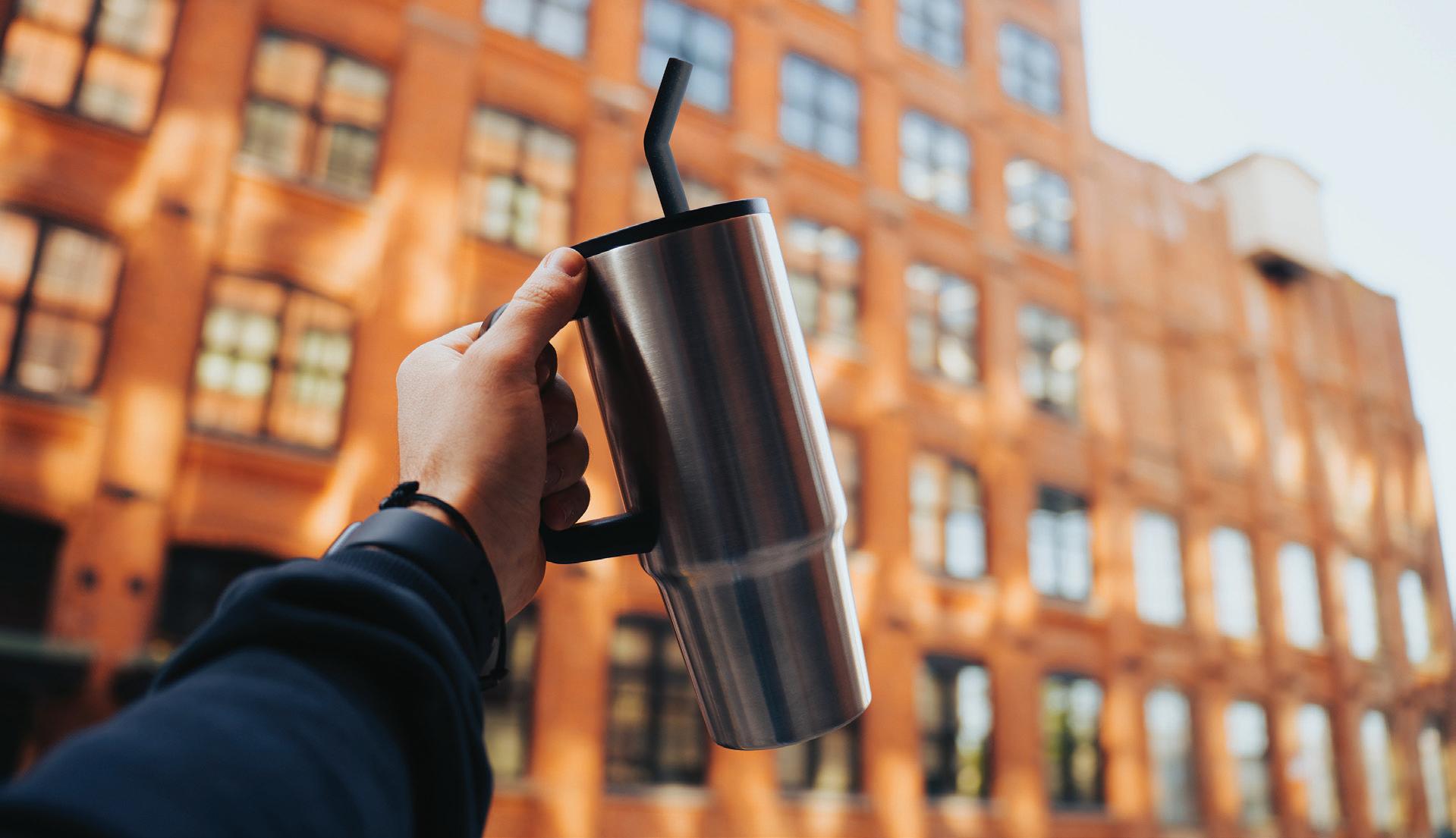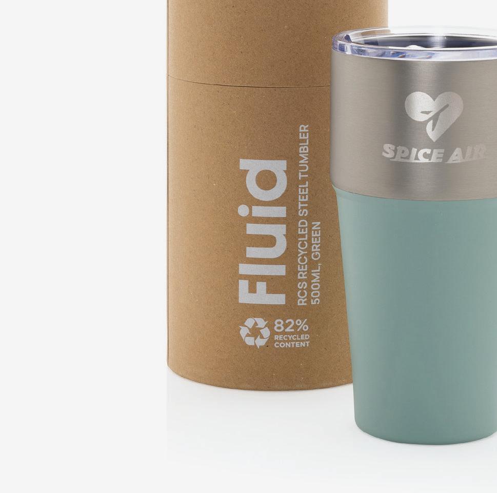 Recycled Stainless steel • Volume 0,9L. • Spillproof