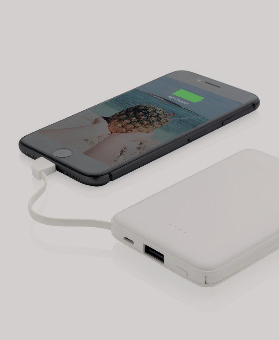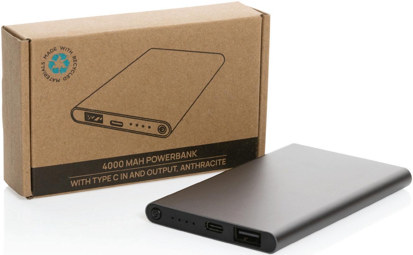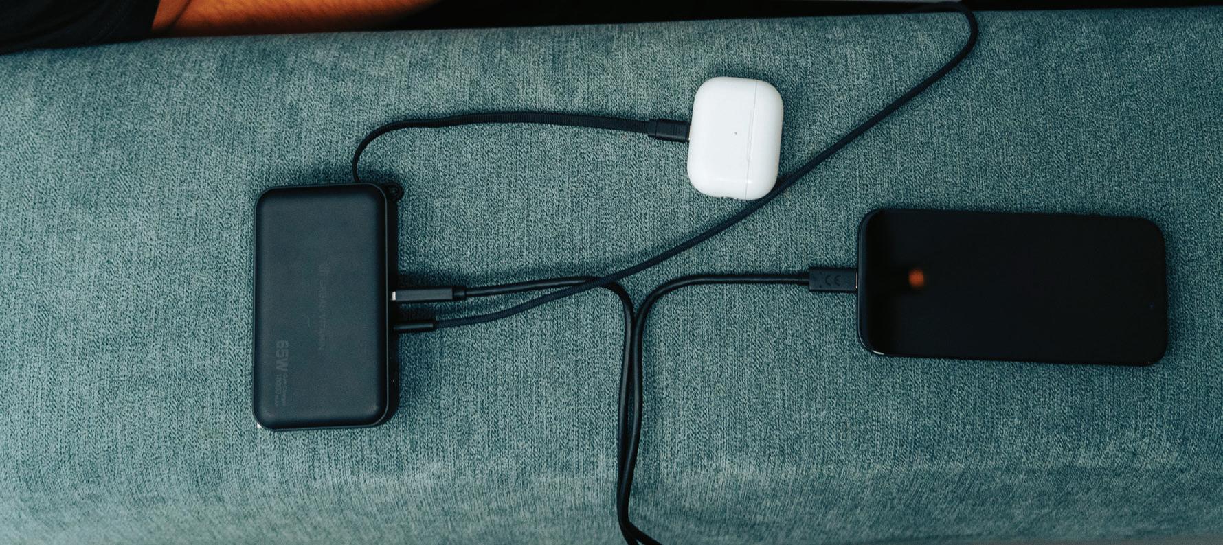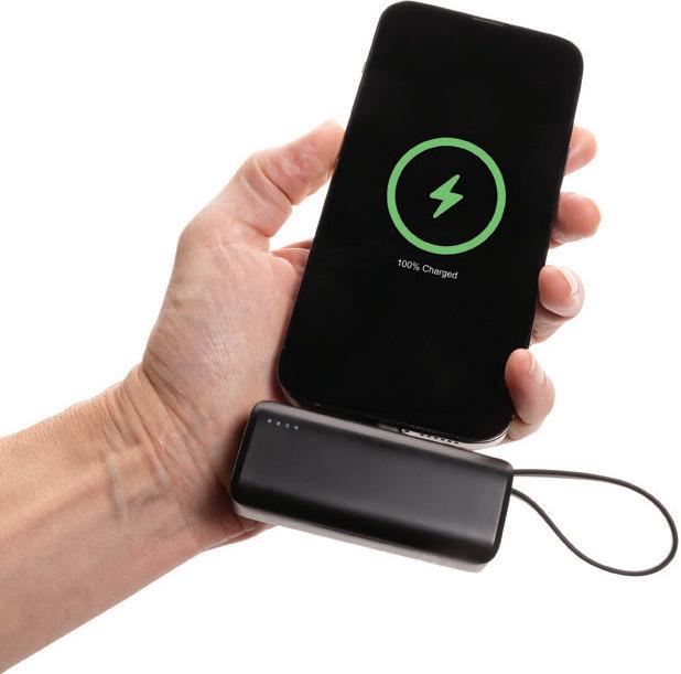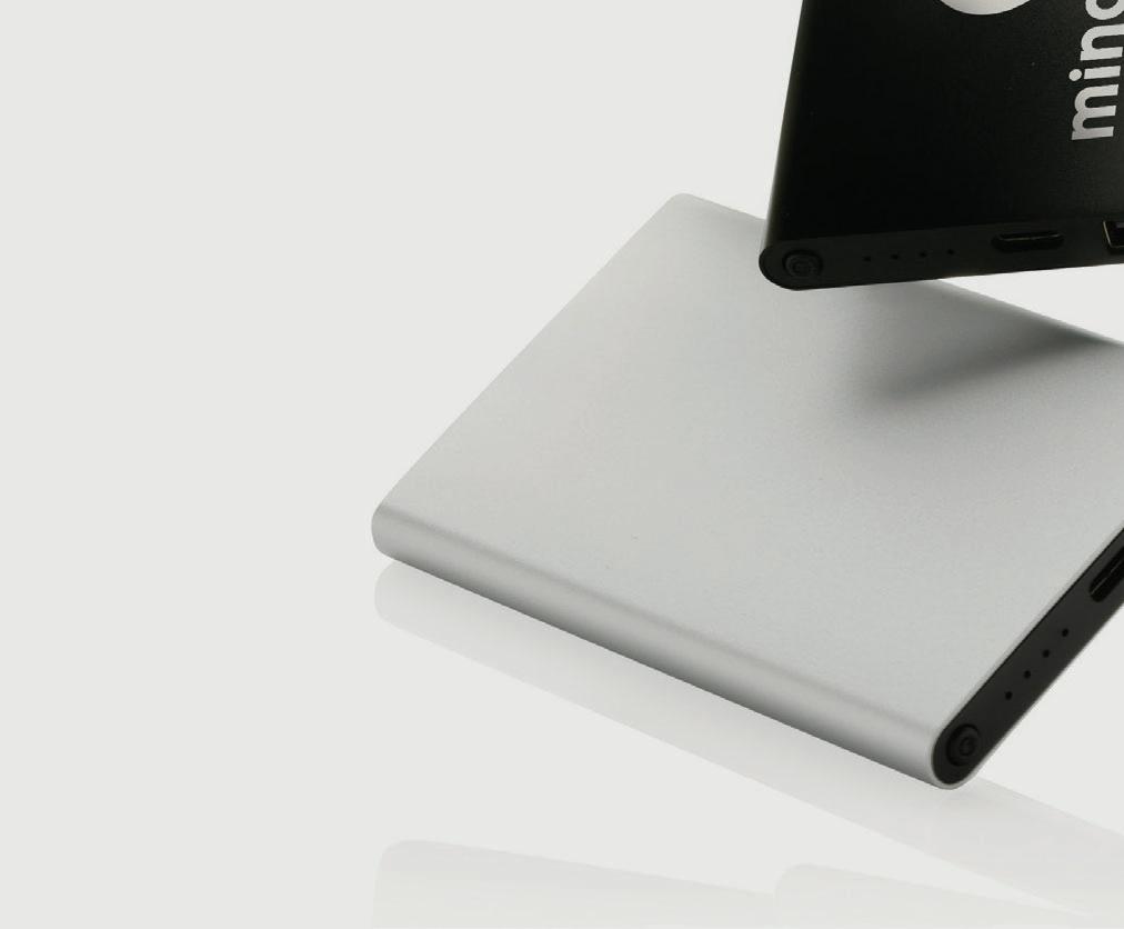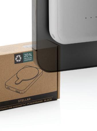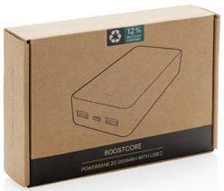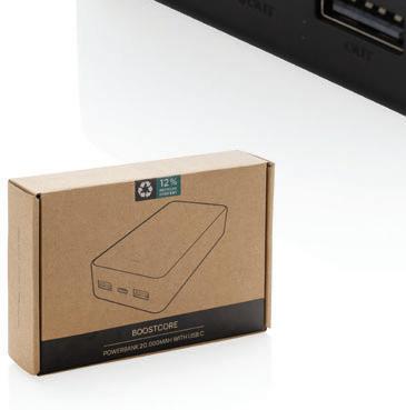 Recycled Polycarbonate • 12W • Charges your phone up to 1 times • USB C port • Type-C charging connector(s) • Charging indicator • Approved as carry-on luggage • Can charge other devices while it charges itself • Loads 2 device(s) simultaneously
