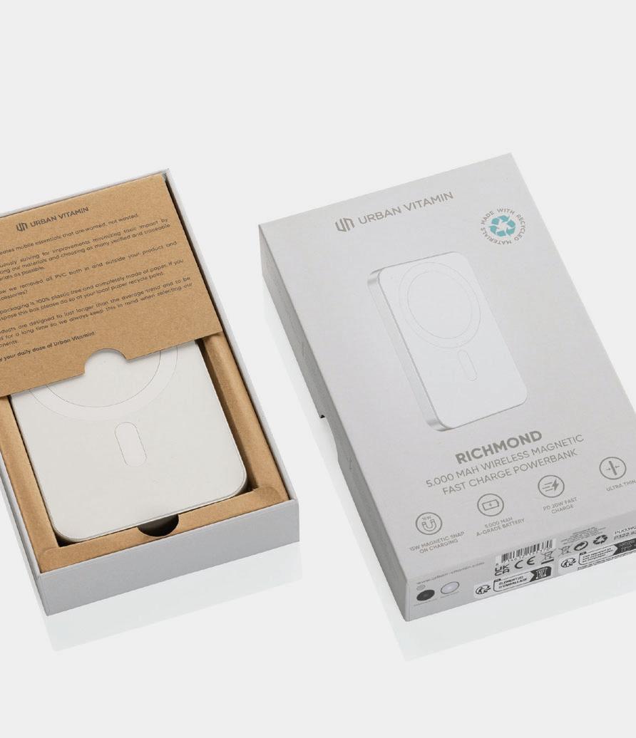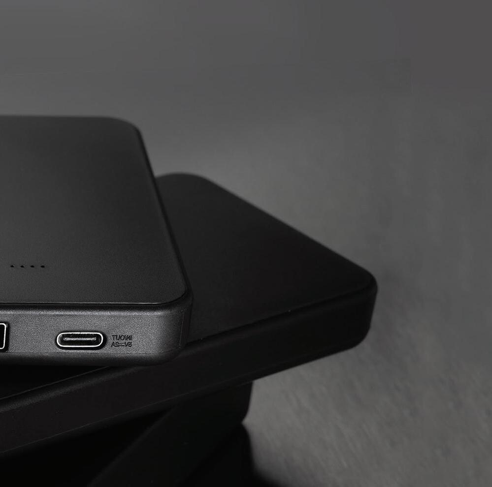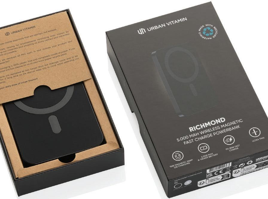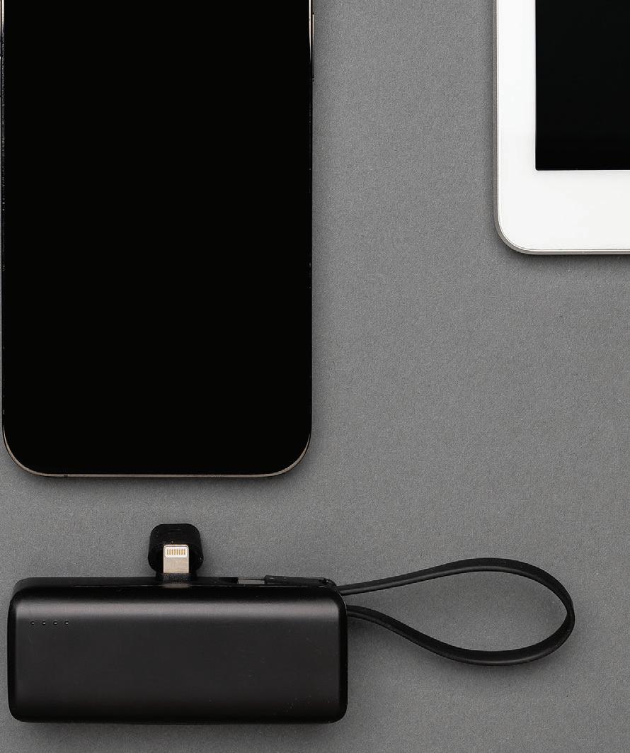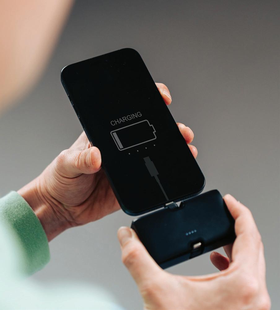 Recycled Polycarbonate • 12W • Charges your phone up to 1 times • USB C port • Type-C charging connector(s) • Charging indicator • Approved as carry-on luggage • Can charge other devices while it charges itself • Loads 2 device(s) simultaneously
