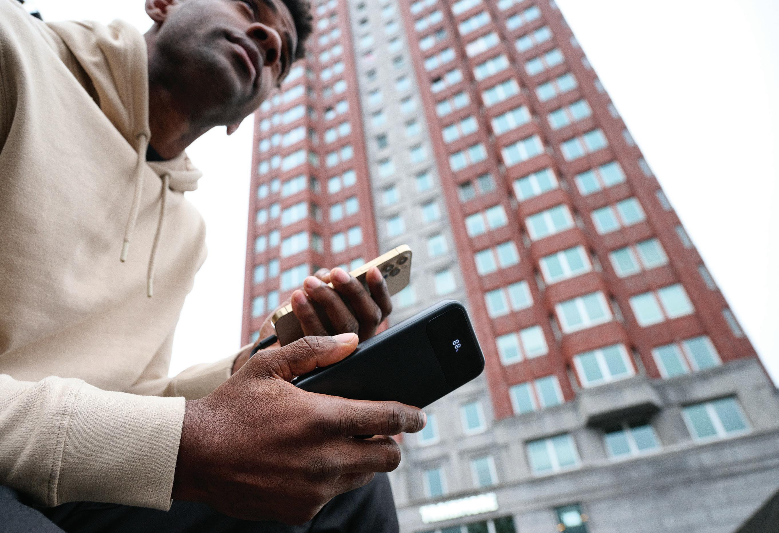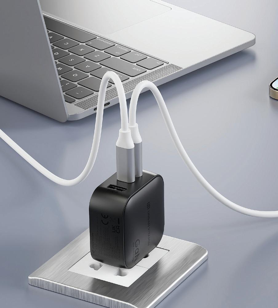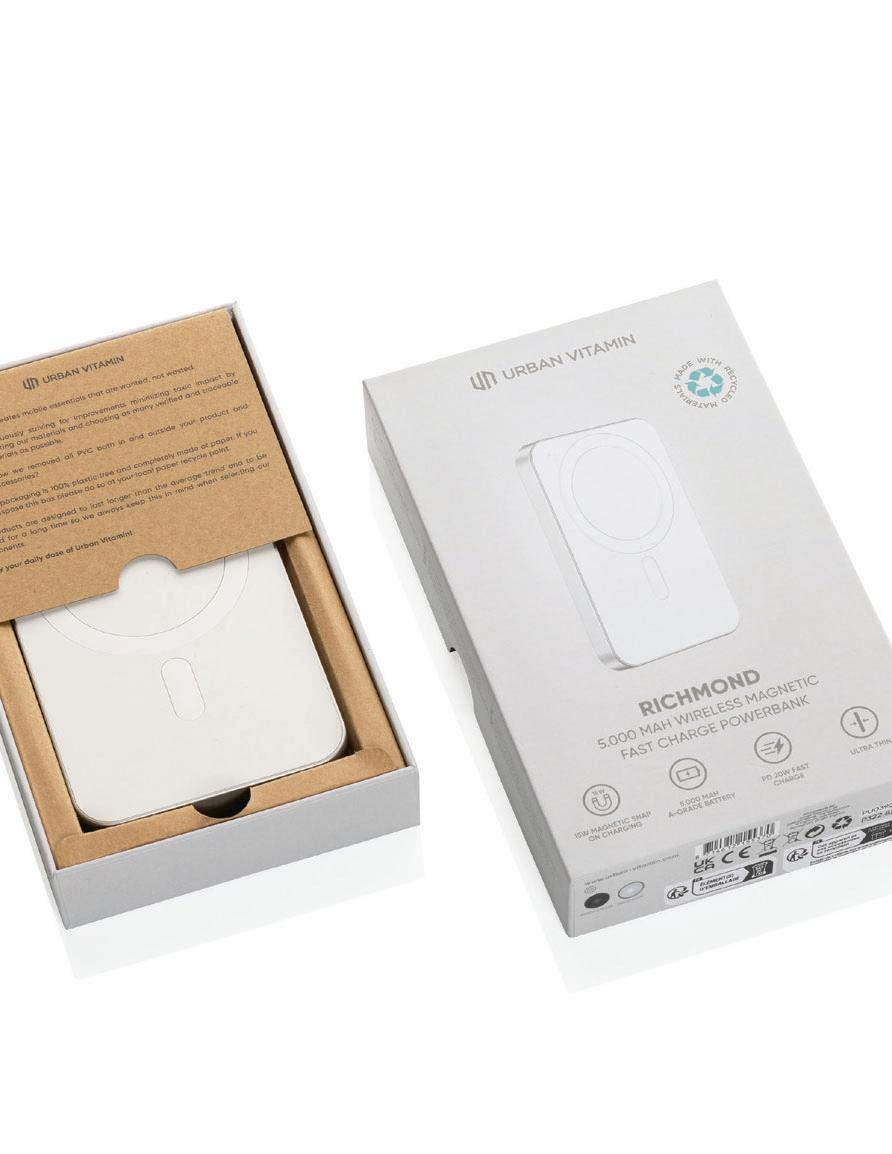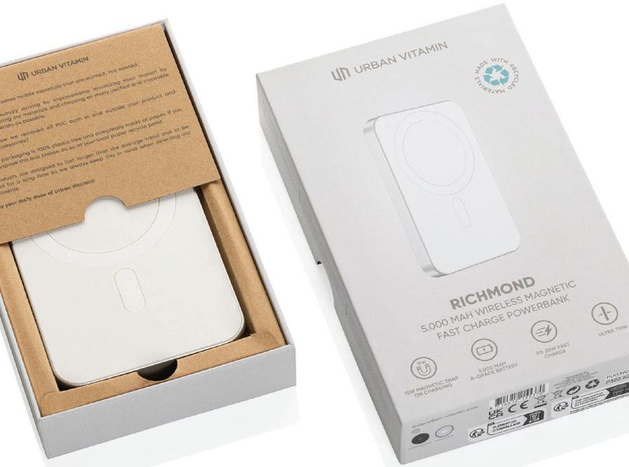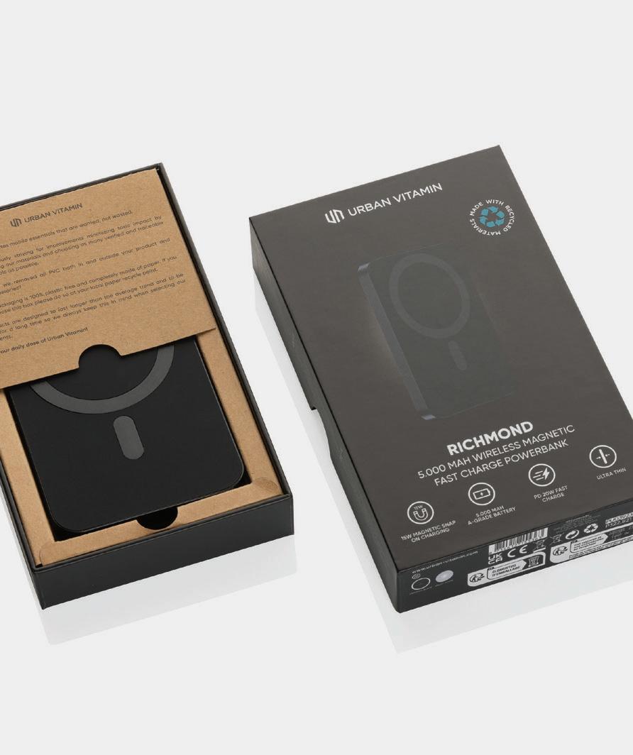 Recycled Polycarbonate • 12W • Charges your phone up to 1 times • USB C port • Type-C charging connector(s) • Charging indicator • Approved as carry-on luggage • Can charge other devices while it charges itself • Loads 2 device(s) simultaneously