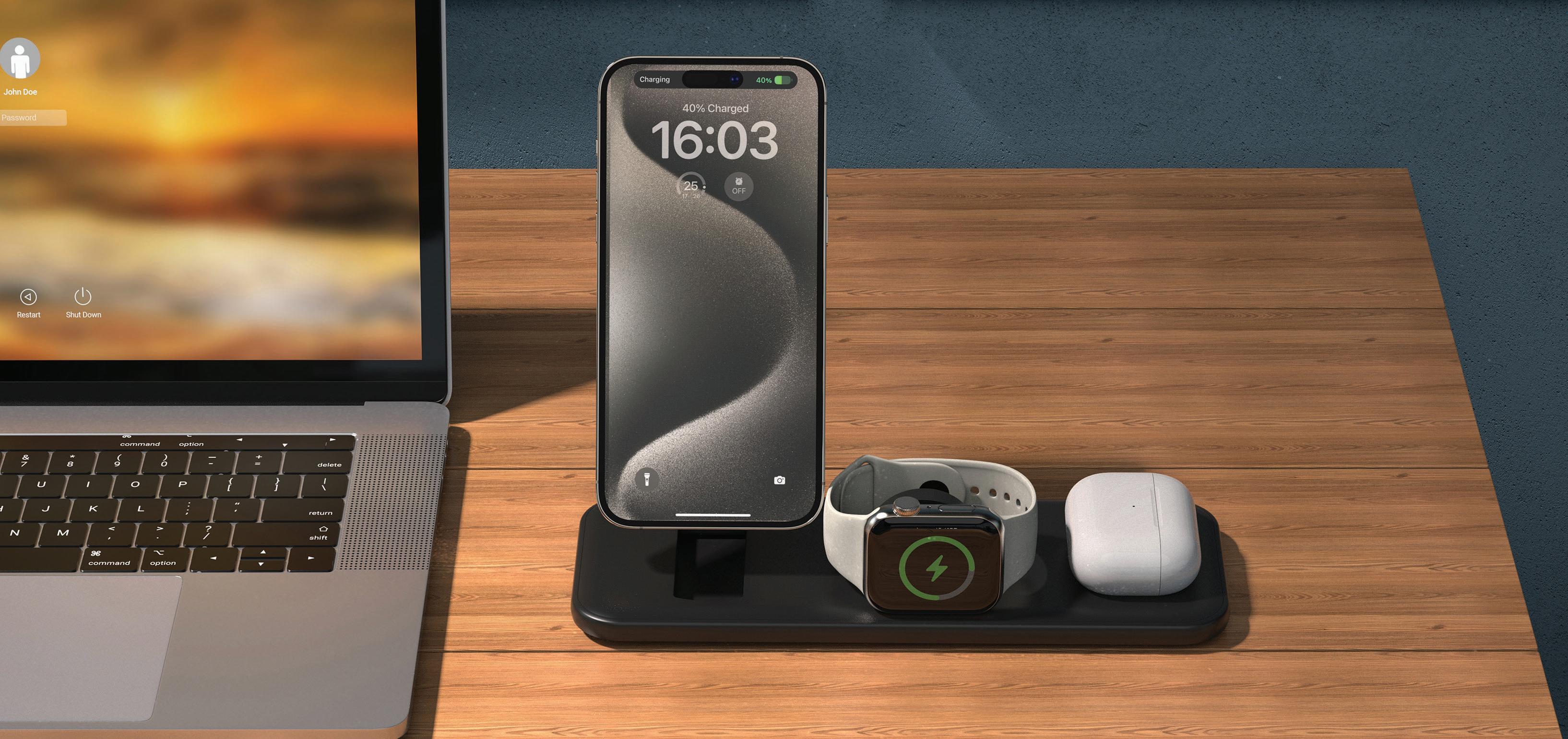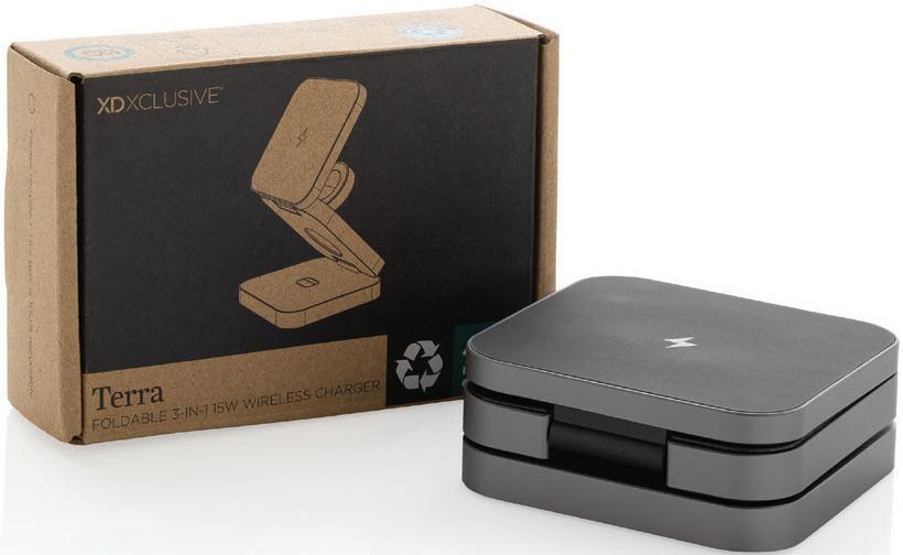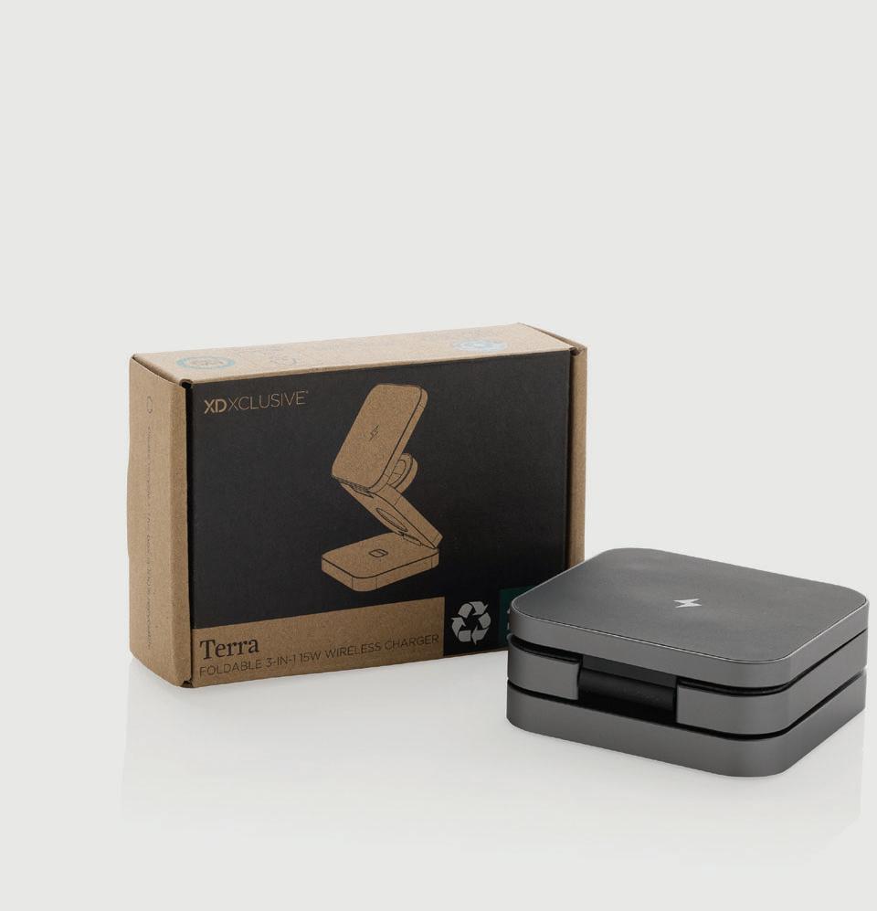 Terra RCS recycled aluminium foldable 3 in 1 15W charger