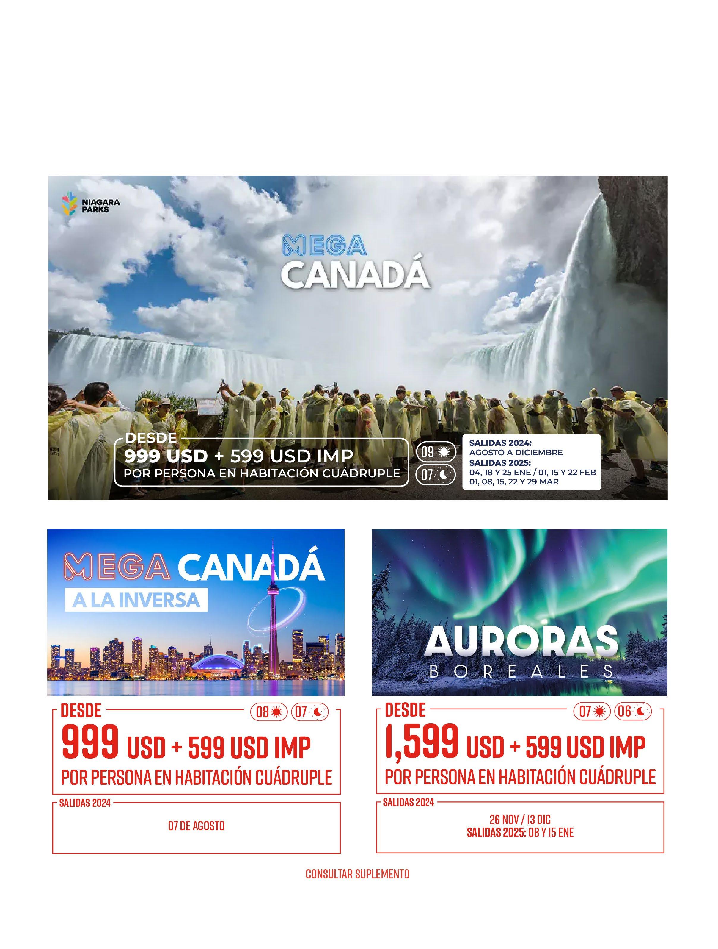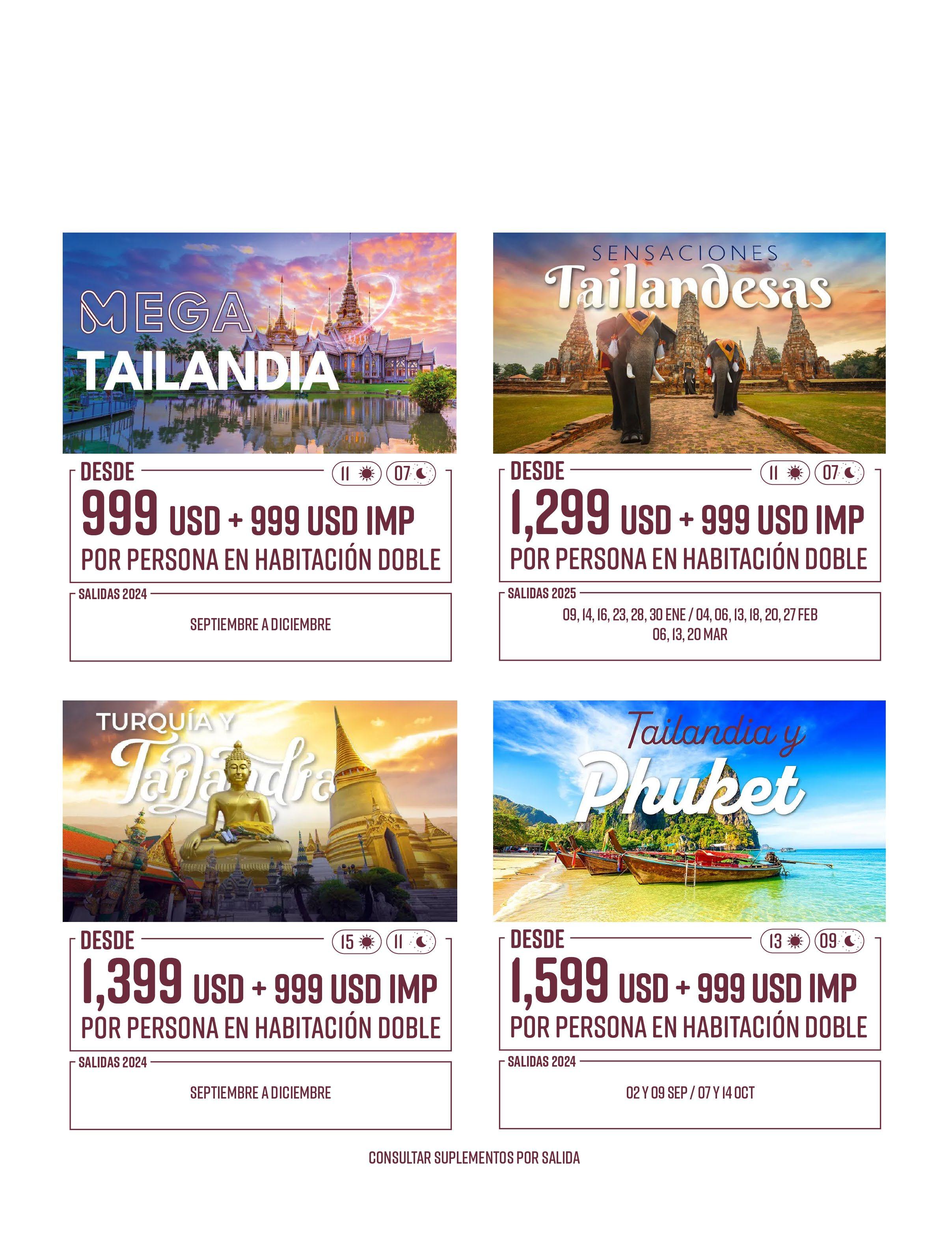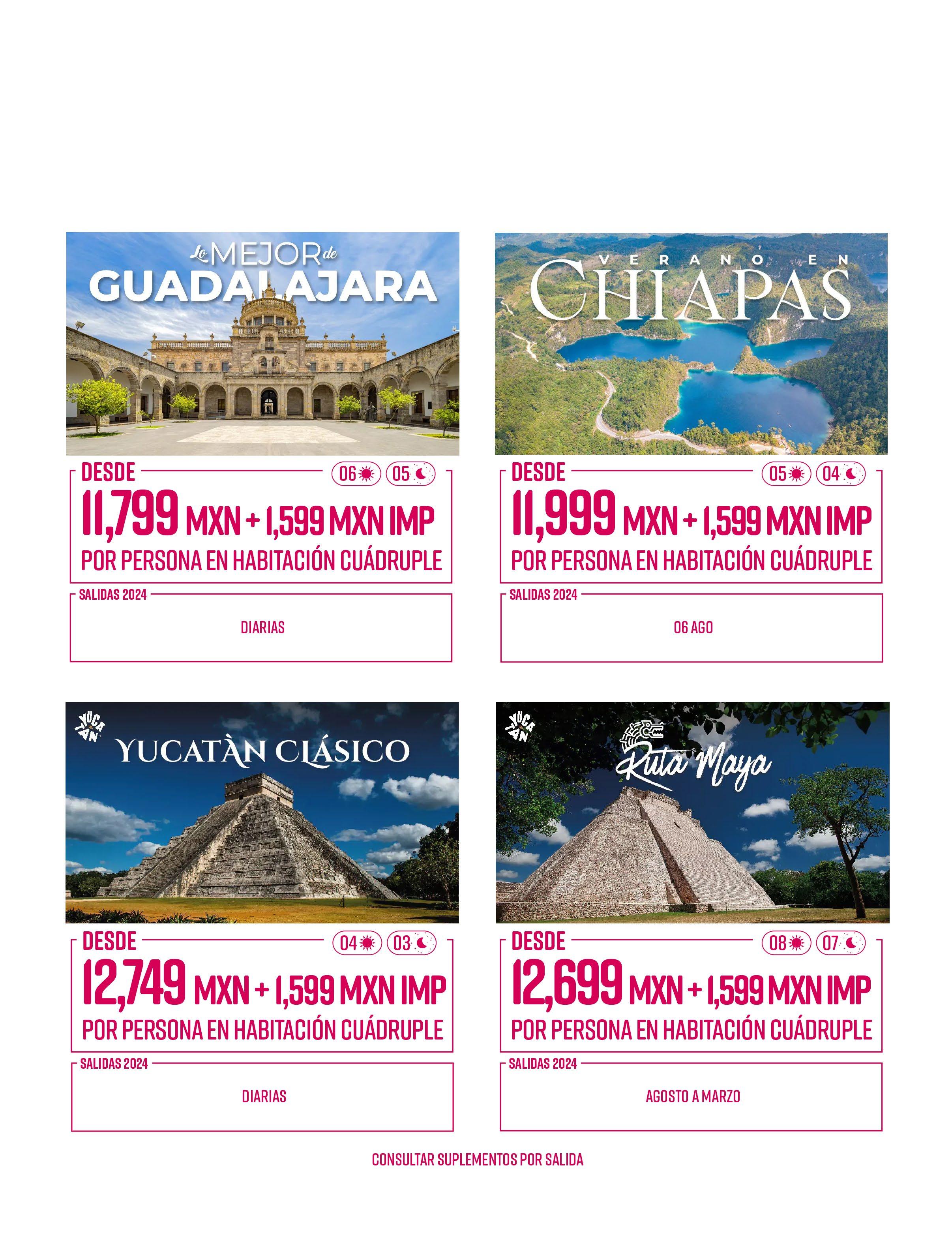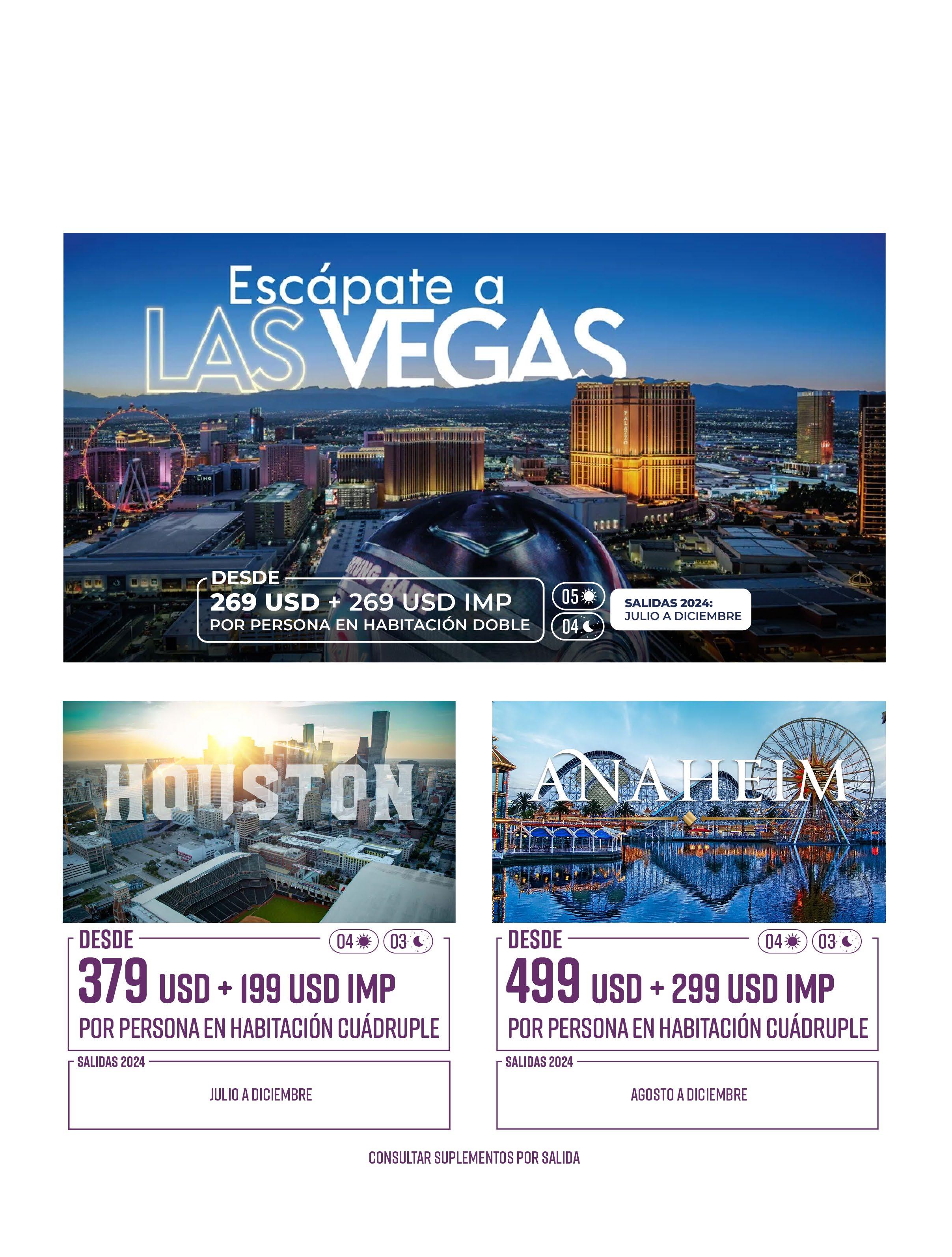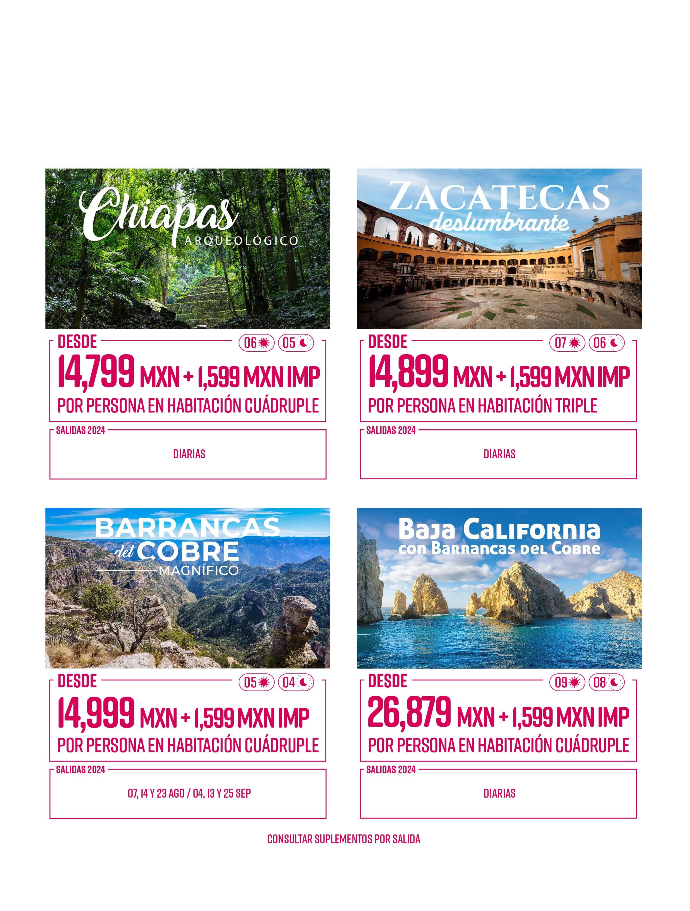 Todos los paquetes descritos en esta publicación incluyen lo siguiente (de acuerdo a itinerario)