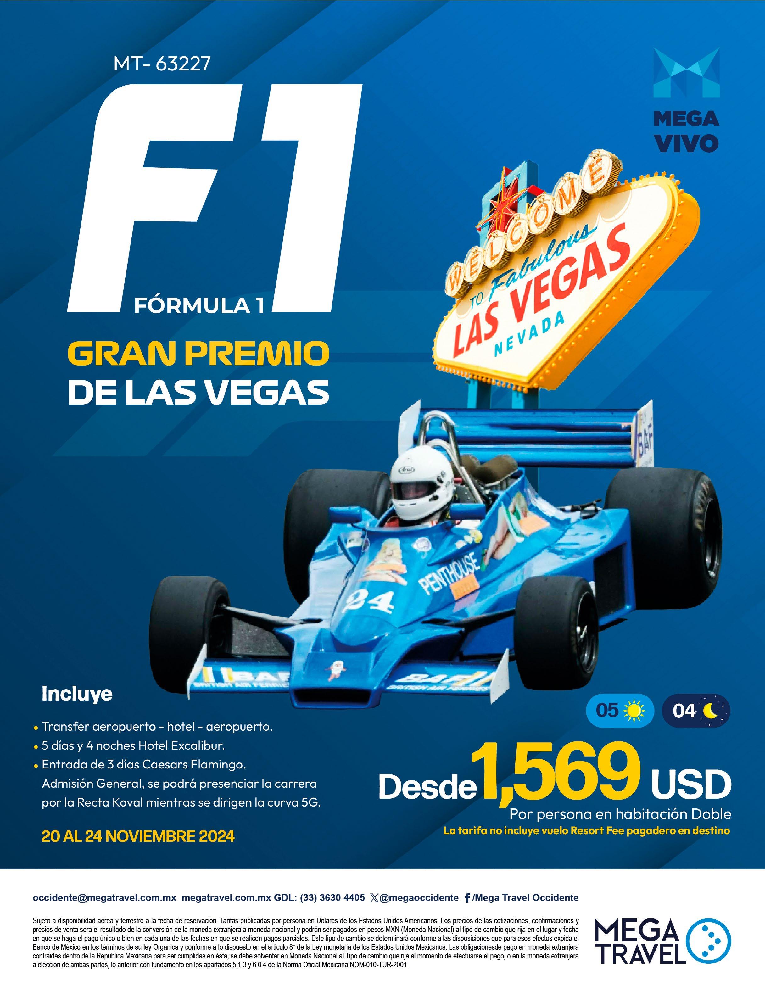 Para este mes Mega en Vivo nos maravilla con F1 en Las Vegas. Este evento exclusivo promete la emoción de la Fórmula 1 combinada con el vibrante espectáculo de Las Vegas. Sabemos que será una oportunidad inigualable para nuestros agentes de viajes y sus clientes.