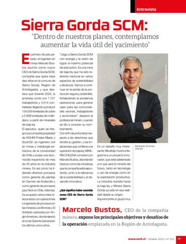 asociados a proyectos públicos y privados, aportando mayor certeza en los tiempos de tramitación. De esta manera, la minería chilena enfrenta el último tramo del año con un escenario auspicioso, pero a la vez exigente, donde la clave estará en mantener la resiliencia y la convicción de avanzar juntos hacia una actividad económica que se proyecta con ambición, responsabilidad y visión de futuro.