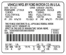 2 July 2023 fenderbender.com For additional information about Auto Data Labels visit our website at www.AutoDataLabels.com or call us at (631) 667-2382. NOTE: When ordering online or by email you will need to include a photo of the label you would like replaced. OUR LABELS WILL COMPLETE YOUR REPAIR! WITH AUTO DATA LABELS, YOU GET: EASY ORDERING ● FAST 1-3 DAY DELIVERY ● HIGH QUALITY MATERIALS RESTORES THE VEHICLE TO ITS ORIGINAL CONDITION VEHICLE EMISSION CONTROLINFORMATION Conforms to regulations: 2016 MY California:Not for sale in states with California emissions standards. TWC/HO2S/WR-HO2S/CAC/TC/DFI U.S. EPA:T2B4 LDV 2.3L-Group: GFMXV02.3VJW Evap: GFMXR0125NBV No adjustments needed. FED OBD II Fuel: Gasoline ABZ EMISSIONS ANTI-THEFT PAINT AND TRIM TIRE AND LOADING TIRE AND LOADING INFORMATION TIRE SIZE COLD TIRE PRESSURE 303kpa 44psi 303kpa 44psi 303kpa 44psi The combined weight of occupants and cargo should never exceed 505 Kg or 1114 Lbs. P265/70R17 P265/70R17 P265/70R17 FRONT REAR SPARE SEE OWNERS MANUAL FOR ADDITIONAL INFORMATION SEATING CAPACITY TOTAL 3FRONT 3REAR 0 VIN LABEL SERVICE PARTS 145 JTHCE96S870000000 145 JTHCE96S870000000 PQTP6P TG33405 BC/CC U 8624 93G 1GTZ7TBG6B1000000 135 0 C6 0 KC4 PDN US8 XHH ZX2 C6Y JL4 N33 USR WEN ZW9 93 B38 JH6 NU4 UJM V8D ZW3 93G BA3 G8 0 NE1 T74 V37 ZR7 7AL A31 GU6 NCF TGA V22 ZQ3 6AL A13 FHS MYD SLM V14 ZQ2 5 0U A12 E24 L96 R9N VT7 ZHH 1WT AXK EVA K68 R8A VR4 YHH 1SZ AU3 EF7 K34 R6C VK3 YD6 Z88 AS5 D31 KUP QB5 U73 YD5 Z82 AJ3 DE5 KD1 PPC UY7 YD3 ZY1 ©2020 LKQ Corporation. Visit us at Shop.LKQcorp.com and LKQcorp.com. | ADL-AUAOT0006-FLE Contact Us : Contact your LKQ/Keystone Local Sales Rep Upload your photos to the Website: www.AutoDataLabels.com Email your photos: Labels@AutoDataLabels.com Use the App: Download the ADL App And Upload your Photos VEHICLEMFD.BYFORDMOTORCO.INU.S.A. DATE: THISVEHICLECONFORMSTOALLAPPLICABLEFEDERALMOTOR