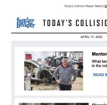 9 July 2023 fenderbender.com VIDEOS | PODCASTS | WEBINARS | NEWS Visit FenderBender.com/news for daily updates from around the collision repair industry. PAST THE PAGE @fenderbendermag @fenderbendermag @fenderbendermag fenderbender.com/linkedin fenderbender.com