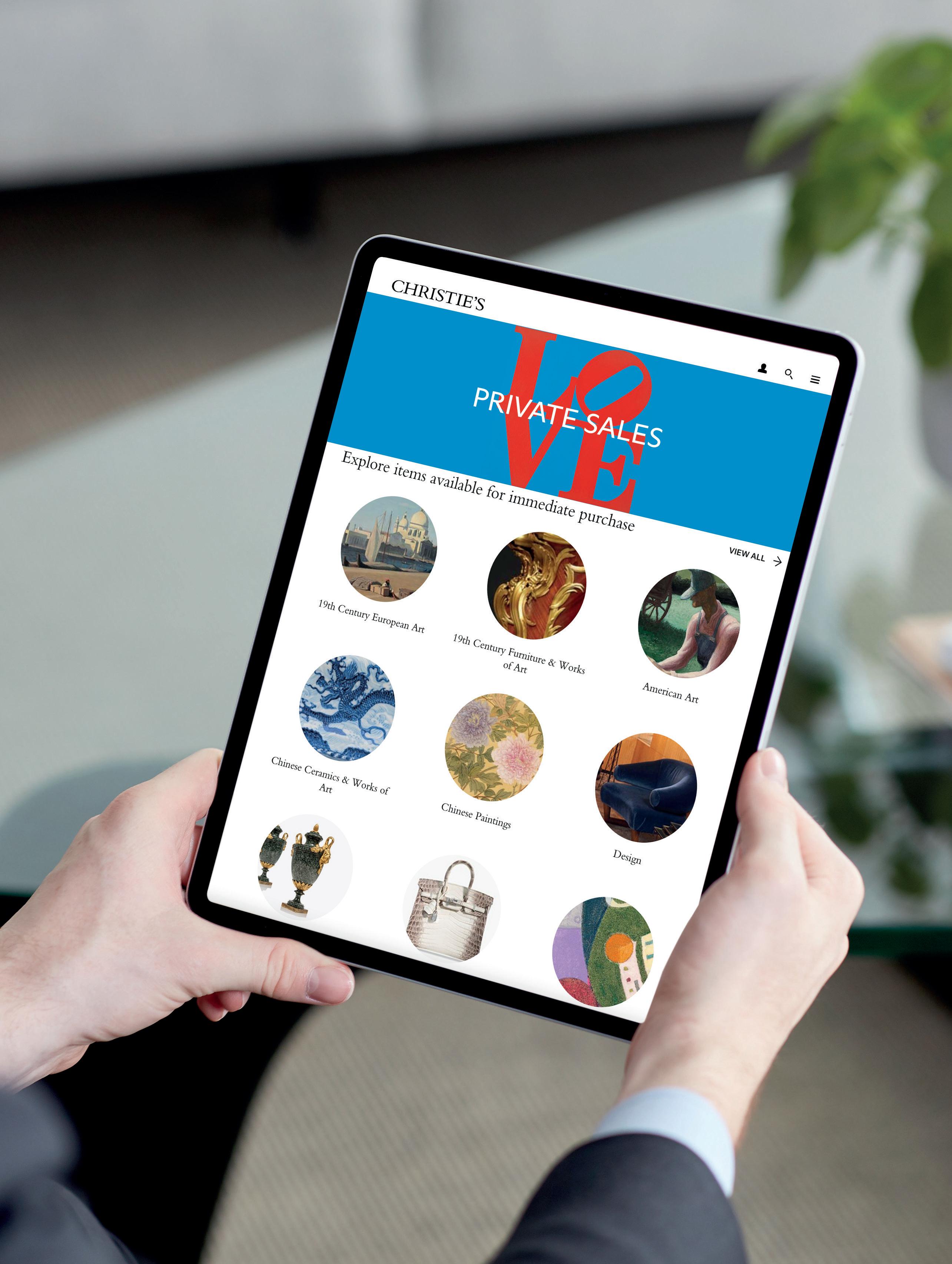 Private Sales at Christie’s have grown rapidly in size, value and depth in recent years, totalling $1.2 billion in 2022: our third highest year ever and a 52% increase on pre-pandemic levels in 2019. Selling Exhibitions are a core component of our Private Sales business.