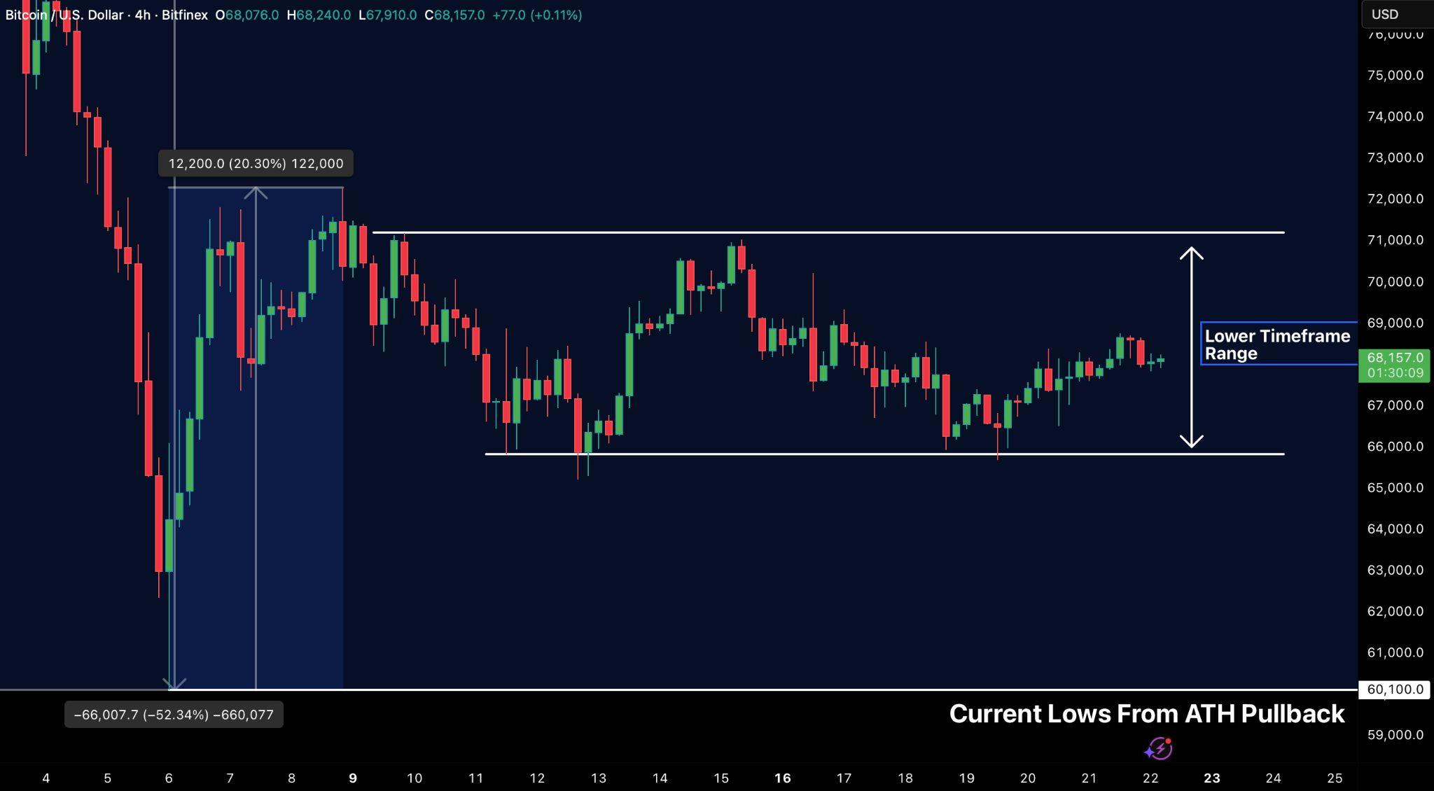 Bitcoinvẫnchưathểbứcphákhỏivùnggiá$66,000$70,000đượcthiếtlậptừ haituầntrước.Diễnbiếngiátiếptụcphảnánhnỗlựctíchlũysaucúsụtgiảm ngày5tháng2–đợtđiềuchỉnhlớnnhấttrongchukỳnày.