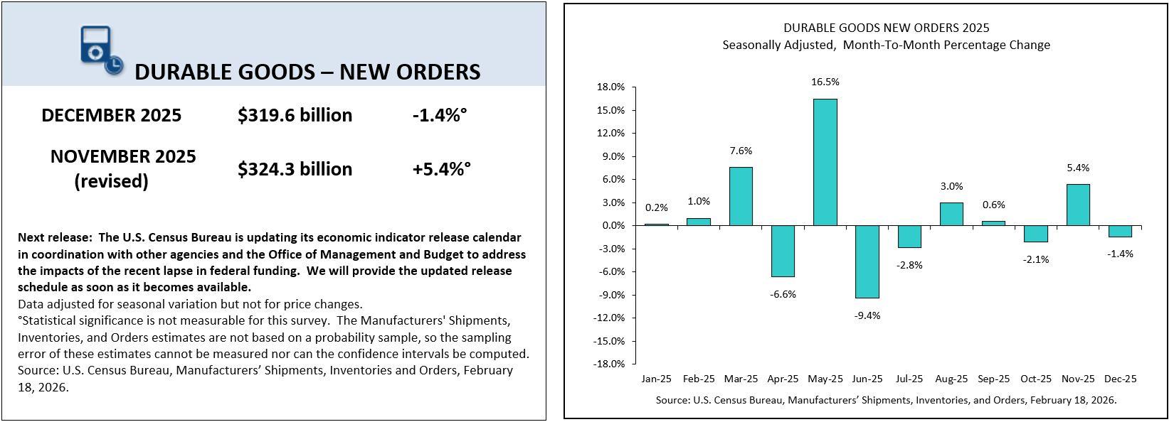 CụcĐiềutraDânsốthuộcBộThươngmạibáocáorằng đơnđặthànghànghóa vốnphiquốcphòngkhôngbaogồmmáybay,thườngđượcgọilàhànghóavốn cốtlõi,đãtăng0,6%trongtháng12saukhimứctăngtháng11đượcđiềuchỉnh lên0,8%.Chỉsốnàyđượcsửdụngrộngrãinhưmộtthướcđochochitiêuthiết bịcủadoanhnghiệpvìnóloạibỏcácmặthàngquốcphòngvàmáybayvốncó nhiều biến động. So với cùng kỳ năm trước, đơn đặt hàng hàng hóa vốn cốt lõi tăng3,5%,báohiệuhoạtđộngđầutưcủadoanhnghiệpvẫnđượcduytrìbềnbỉ.
