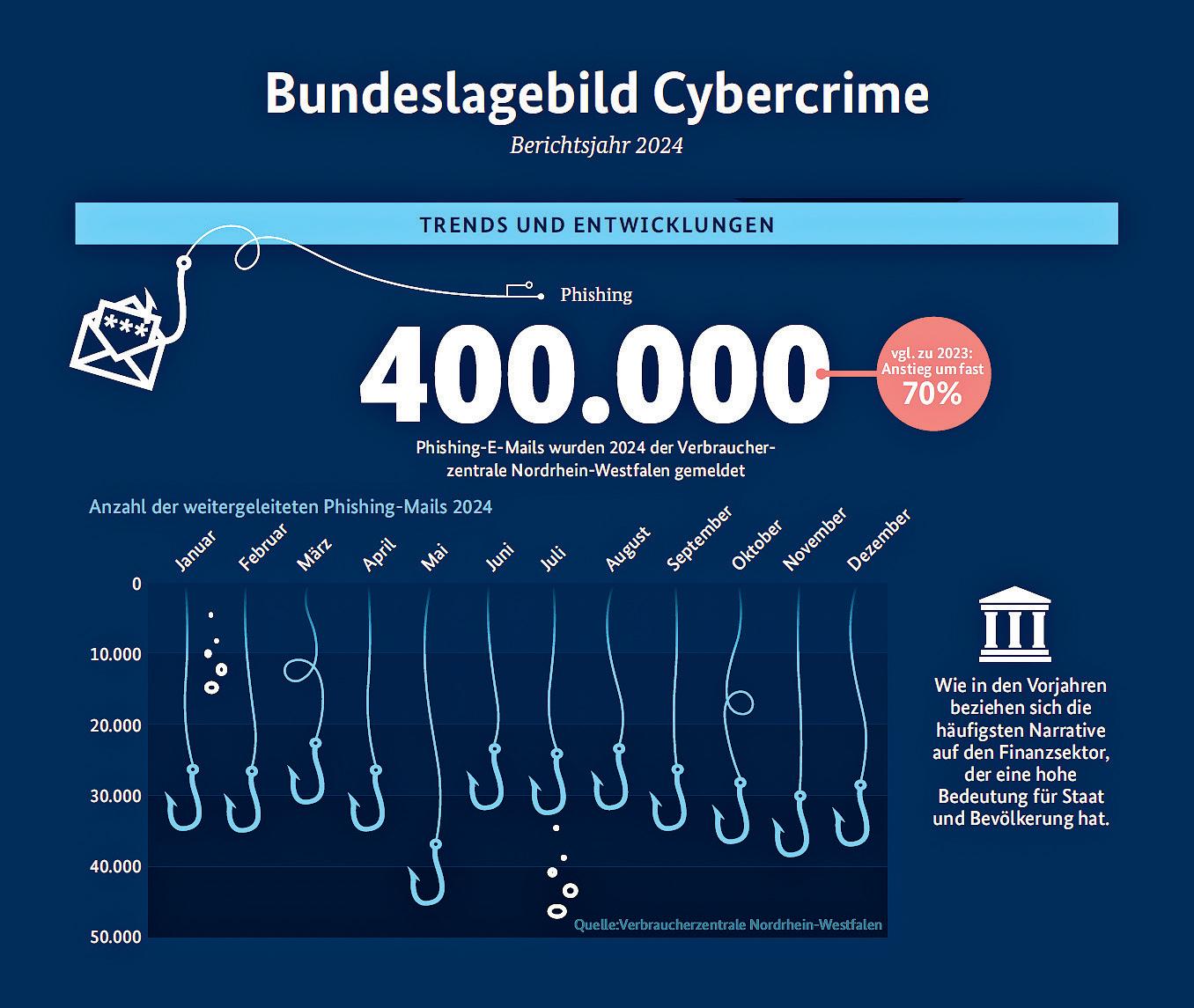 Das Bundeslagebild Cybercrime 2024 des BKA beschreibt die Risiken durch Phishing und betont dabei die Verschärfung der Lage durch KI-Einsatz auf Seiten der Angreifenden.
