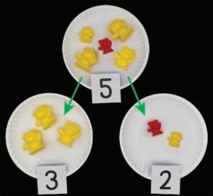 Cuando su estudiante halla maneras de separar un número en dos partes, halla parejas de números que suman ese número. Por ejemplo, 1 y 4 es una pareja de números que suman 5. Hallar y registrar todas las parejas de números que suman cierto número le ayuda a ver las diferentes maneras en que se puede separar ese número.