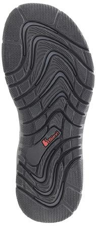 SieviAir® Go safety footwear combines advanced flexibility, a spacious XL fit and the SieviAir® sole system for foot ventilation. Developed and patented by Sievi, the SieviAir® sole system dissipates moisture generated as the feet warm up through exhalation channels in the side of the sole. The insole is perforated and has a filter underneath, which is connected to the flow channels. With every step you take the filter is compressed, returning to its original shape when the foot is lifted. This movement produces a pumping action, improving the ventilation of the shoe.