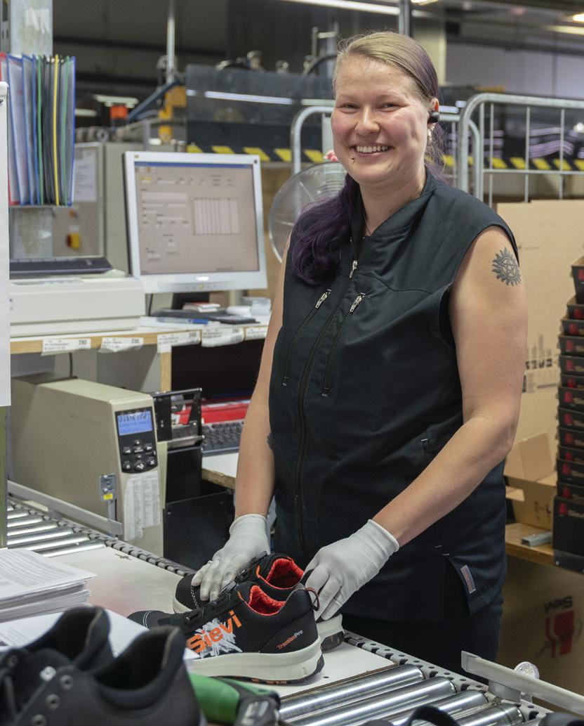 To expand our range of occupational footwear, Sievi will o er new products that di er from our current o ering in terms of manufacturing techniques. These products include sporty trainer-like shoes and sandals. Breaking away from a longstanding tradition, these products have been sourced readymade from specialist manufacturers. Most of our occupational footwear models and all our safety shoes and PU boots will continue to be made at our Sievi and Oulainen factories.