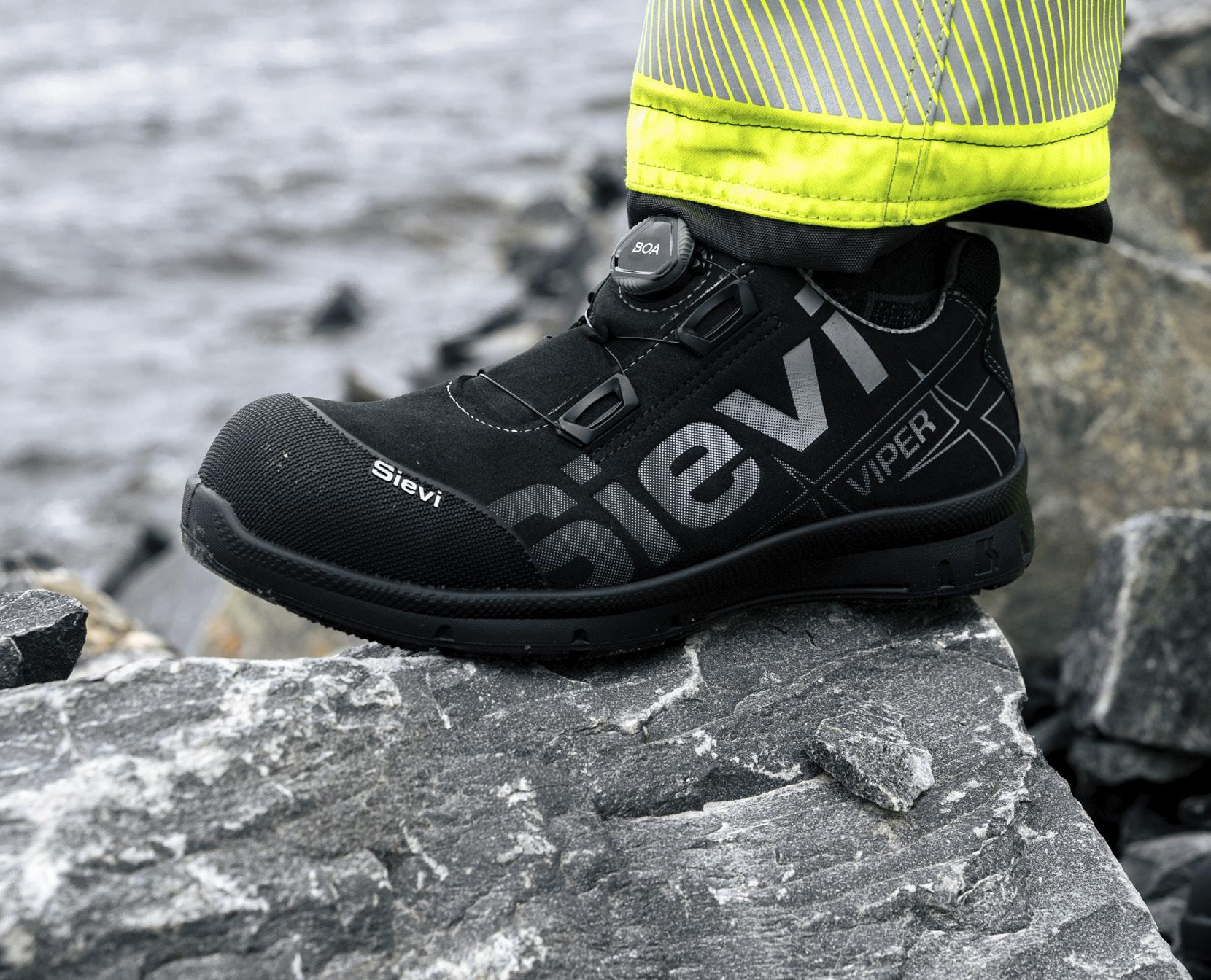 The Sievi Cobra® and Sievi Runner safety shoes guarantee excellent grip and wear resistance thanks to the Sievi TractionPro® friction sole, which has a sporty profile to provide great traction and shock absorption, especially in areas where the foot needs support.