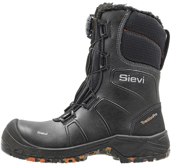 Sievi TractionPro® is a sturdy friction sole that gives stronger grip on slippery surfaces. The unique sticky rubber sole, together with the FlexStep® interlayer, developed by Sievi, ensure that the sole remains flexible in all conditions. The Sievi TractionPro® sole’s structure and design, with its deep and sharp-edged tread profile, are designed to maximise friction and maintain grip on di!erent surfaces.