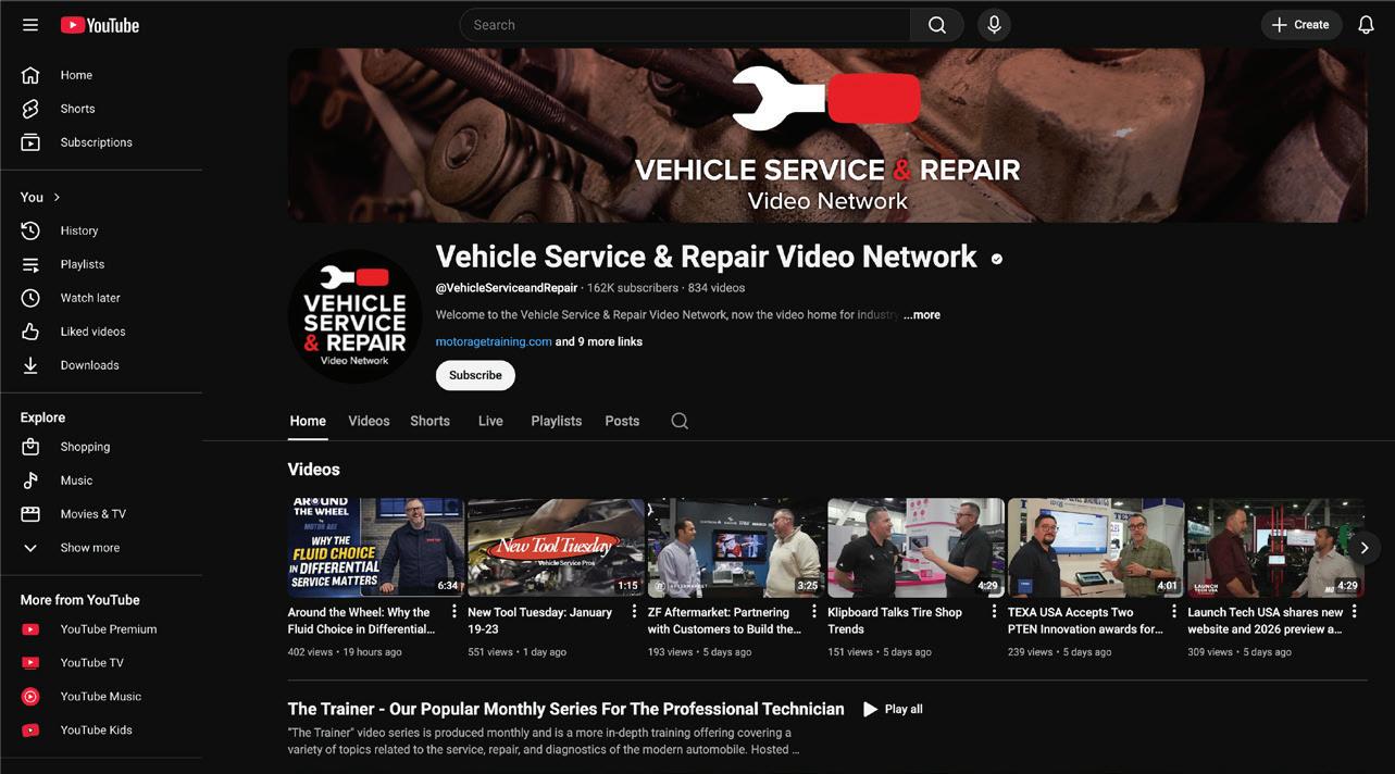 We’ve rebranded our YouTube channel to unite all vehicle service and repair content under one authoritative platform. The new Vehicle Service & Repair Video Network consolidates expert training, diagnostics, and industry intelligence from Motor Age, Professional Tool & Equipment News, Ratchet+Wrench, and seven other leading brands. Designed for today’s technicians navigating ADAS, EV technologies, and complex diagnostics, the channel delivers best-in-class technical content for service professionals.