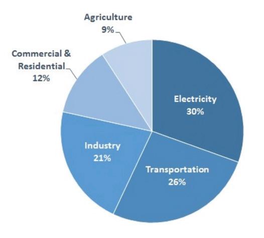This pie chart shows total U.S. greenhouse gas emissions by economic sector in 2014.