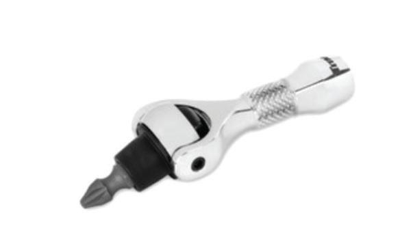 The 1/4” Drive Nano Bit Driver w/ Hex-Handle Ratchet, No. 11340, from Titan features a 250-degree swivel head, magnetic bit retention, and a minimal 4-degree sweep. The handle end functions as a magnetic bit driver, while the 90-tooth reversible ratchet allows for smooth operation. This tool is ideal for use in confined areas and on tasks that need more leverage than a finger ratchet has to offer. The knurled handle is designed for greater control. The tool is 2-1/4” long.