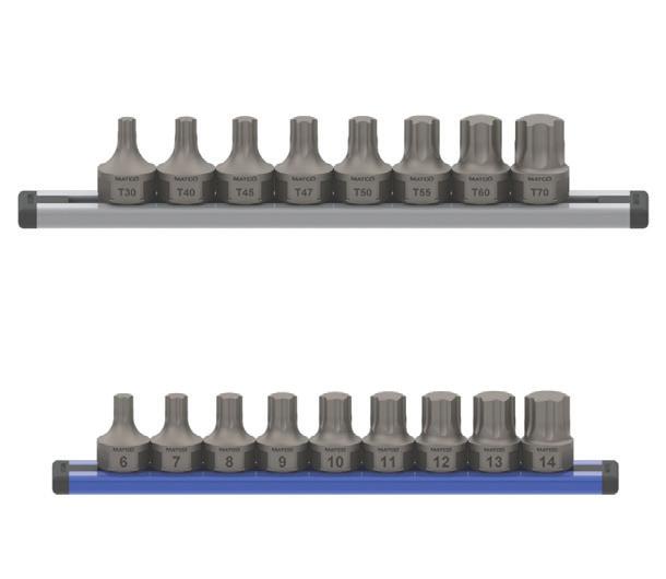 The Matco Tools 8-pc 3/8” and 17mm Dual Drive OPTI-GRIP Star and Hex Bit Set, Nos. SB17TX8OGB and SB17XYM9OG, are designed to give automotive technicians a reliable way to tackle fasteners, even damaged ones. Patented OPTI-GRIP hex and star geometry delivers up to 50% more grip on new fasteners and up to 400% more grip on damaged fasteners versus standard tools, according to Matco, preventing rounding and improving removal success. Each S2 steel dual-drive bit measures just 27 mm long while retaining a full-length tip across most sizes for complete contact in tight engine bays. Multiple drive options include 3/8” internal square and a 17 mm external hex. Large laser-etched size markings boost visibility.