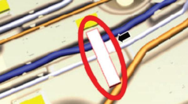 • Remove the ACC module bezel/cover from the right front outer fascia grille and inspect the ACC module for a properly secured mount to the ACC bracket at the lower right pin.