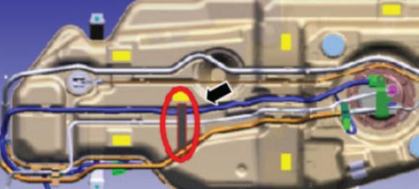 • Make sure that the fuel line convolute is seated in the retaining clip.
