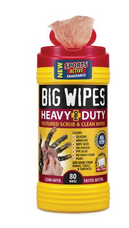 The Big Wipes Heavy Duty Textured Scrub & Clean Wipes is designed to remove grease, grime, adhesices, sealants, paint, anti-seize, and dirt from hands, tools, and surfaces without the use of harsh solvents. These wipes require no water and are durable, absorbent, and safe on skin, according to the company.