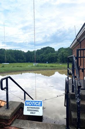 WCHL General Manager Aubrey Williams visited the station’s AM transmitter site on the morning of July 7 to assess damage from the storm. She was unable to enter until later that day, after water was pumped out, and found that all of the station’s equipment had been submerged under 5 feet of