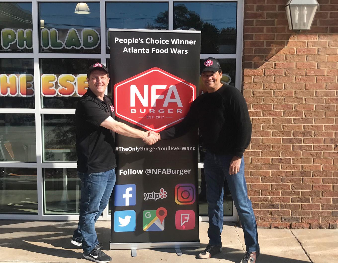 NFA Burger sold three burgers its first day but now has lines of waiting customers.