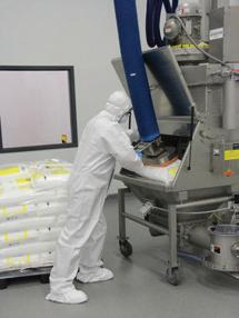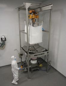 both driven by TEFC high efficiency inverter duty motors: a two-wing anchor agitator driven by a 20 HP motor and a high-speed disperser powered by a 60 HP motor. The open disc blade of the disperser, which travels at roughly 5,000 feet per minute, is designed to induce vigorous turbulent flow, creating a vortex into which dry ingredients can be poured for fast wetting. The anchor feeds product toward the high-speed disperser blade and ensures constant turnover. Ross Mixers; Hauppauge, N.Y. 800-243-7677; www.mixers.com