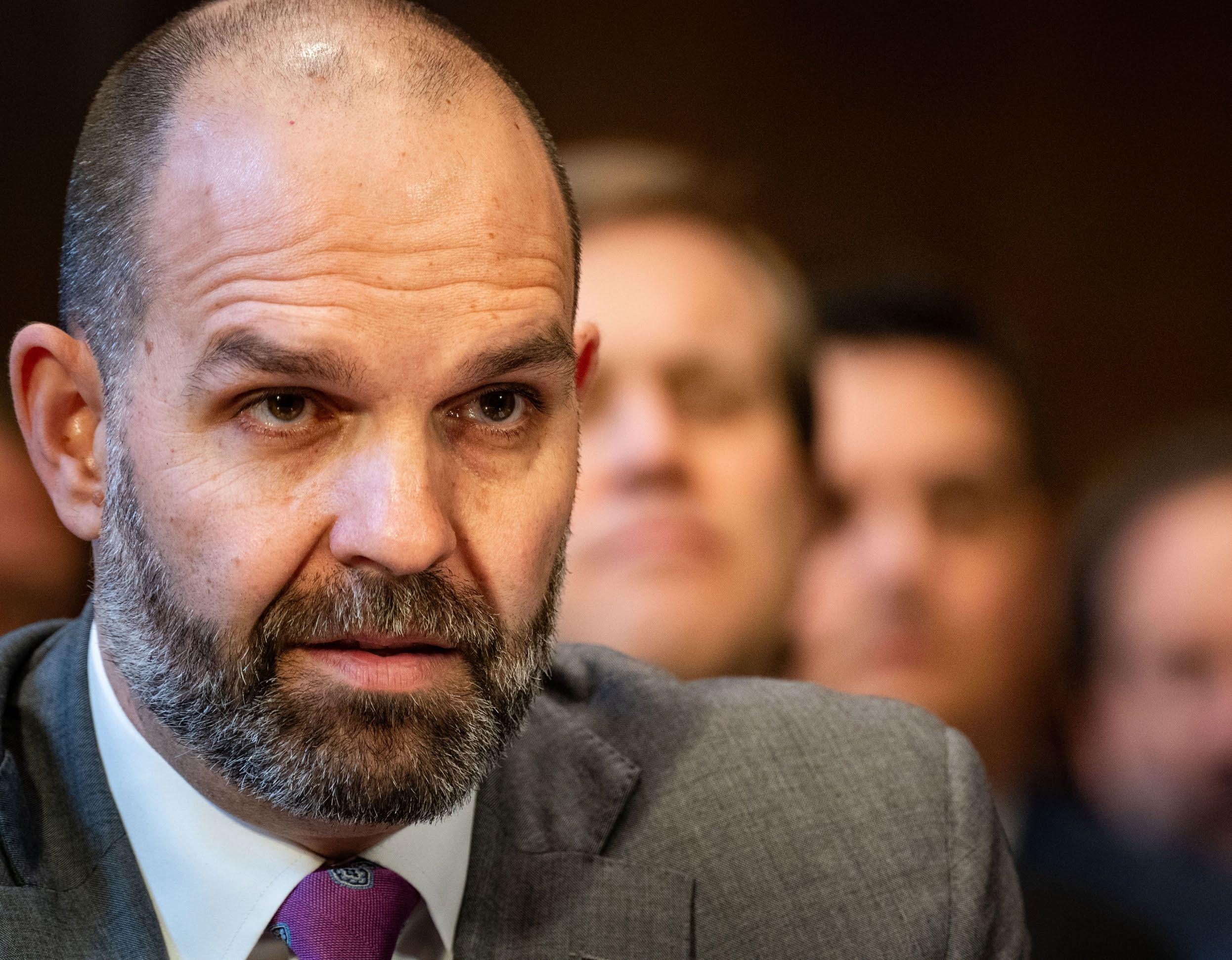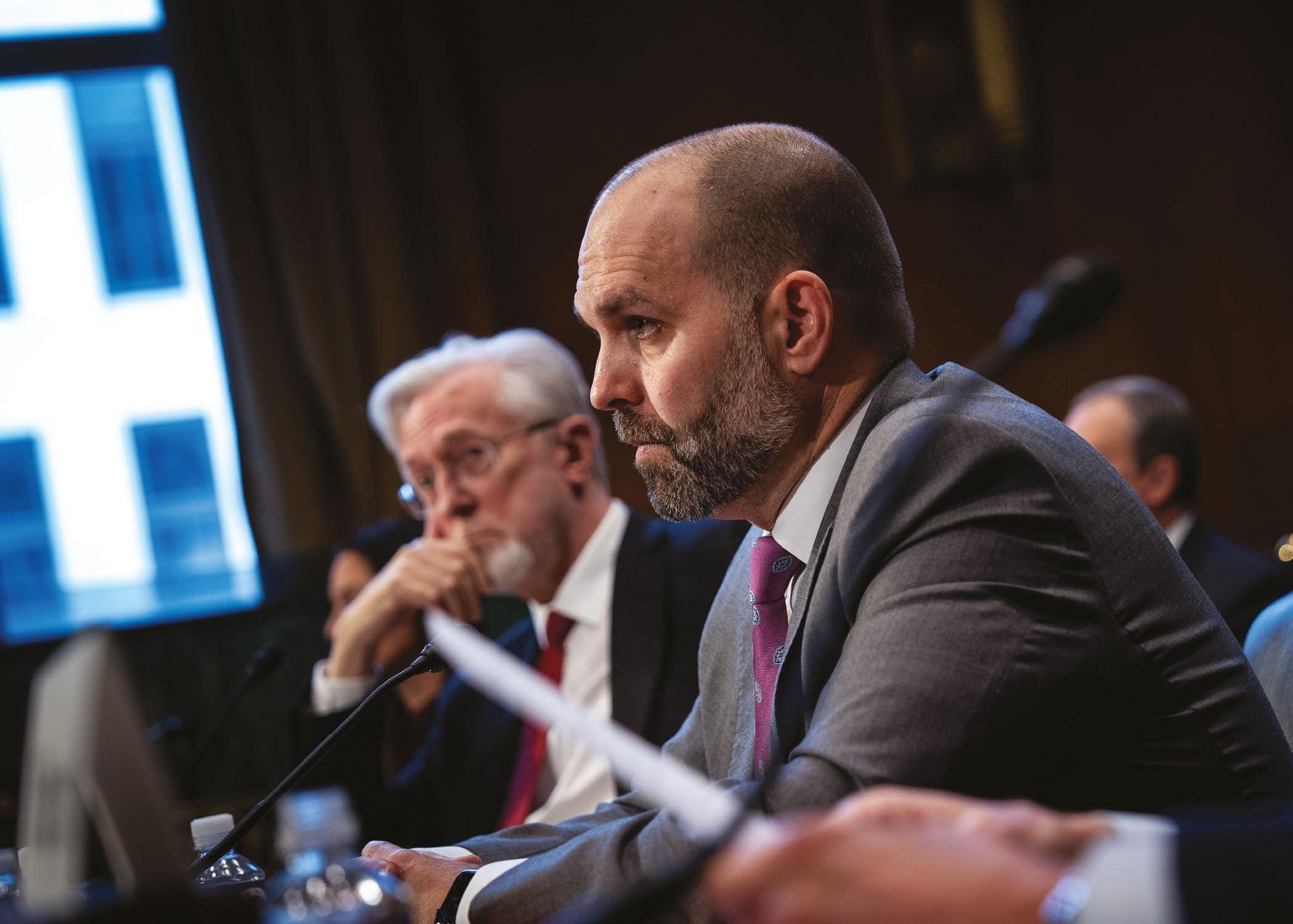 Above Curtis LeGeyt during a Senate Judiciary subcommittee hearing about AI and the future of journalism in 2024.