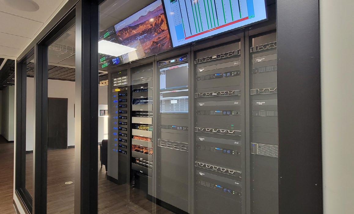 “We ended up with three on-air studios, with one being a large AM studio with seven guest spots, and two production studios.” He said the company sought to create a clean layout that can support podcasting and video as well as radio needs.