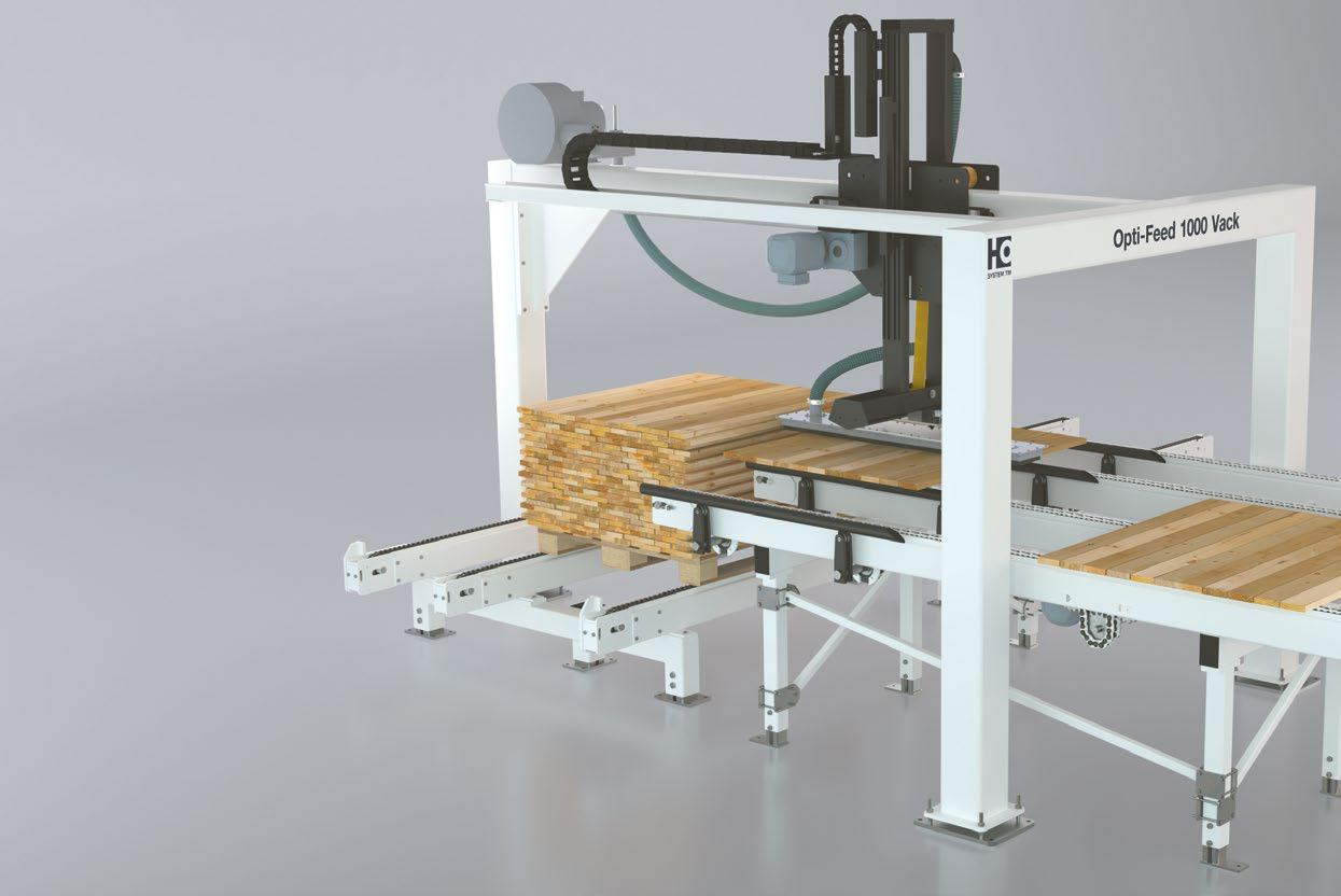 Opti-Feed 1000 Vack is a vacuum de-stacking unit for feeding complete or partial layers of workpieces into different main machines such as cross-cut saws, moulders, scanners, resaws and finger-jointing machines.