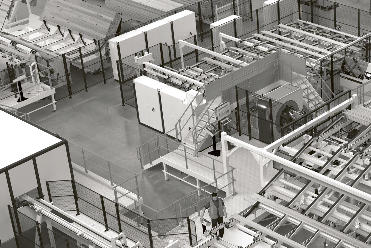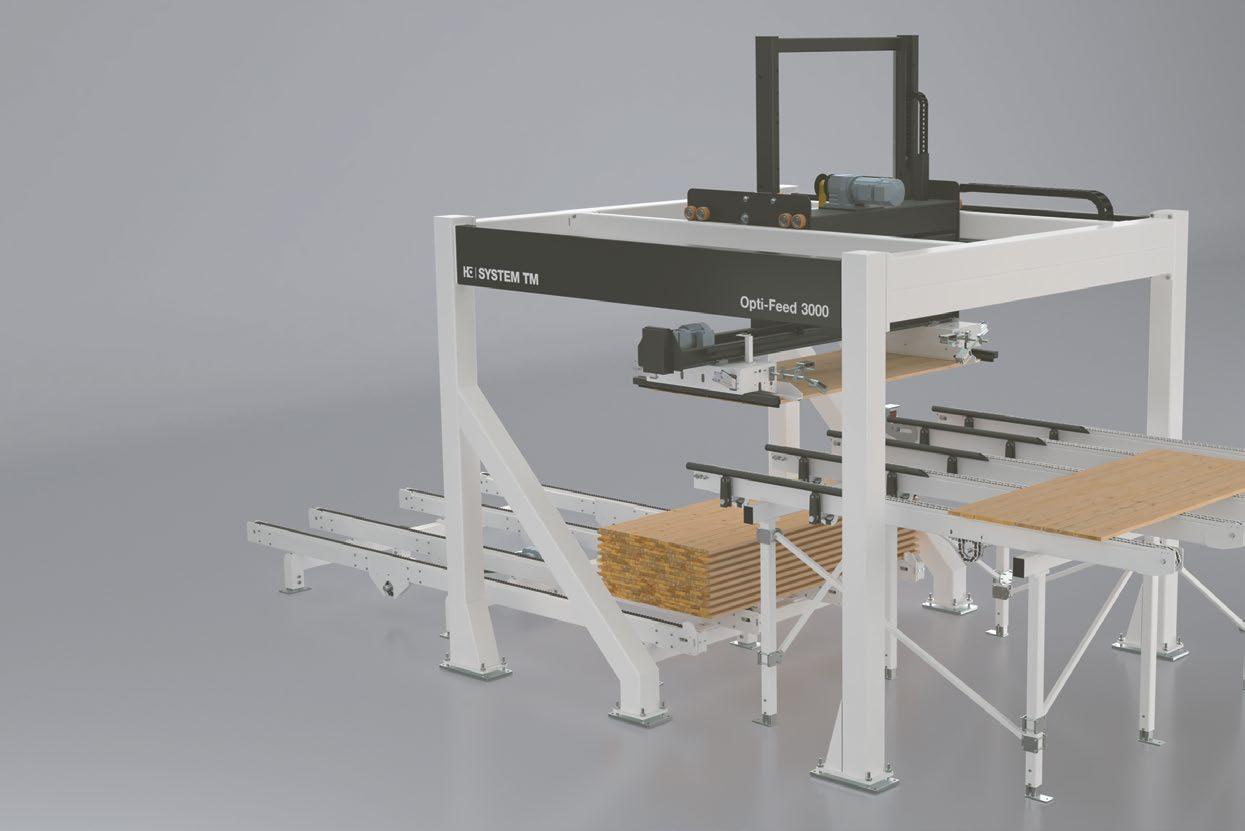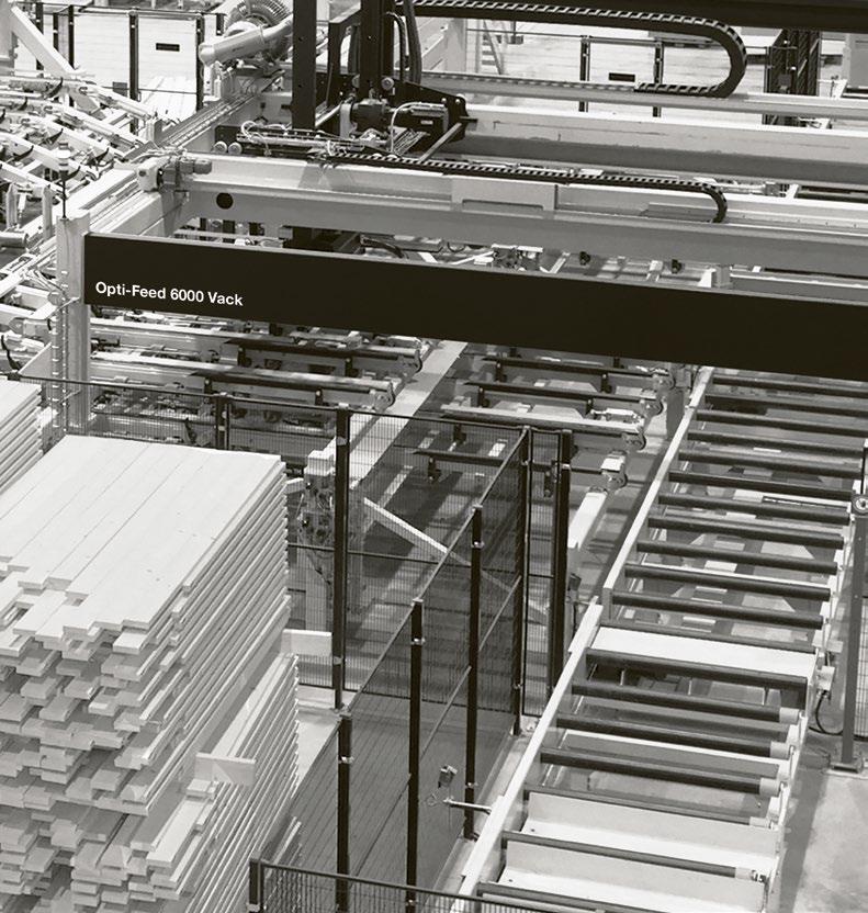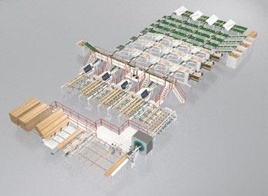 This automated infeed system provides full utilization of the main machine capacity and maximum utilization of staff and wood resources.