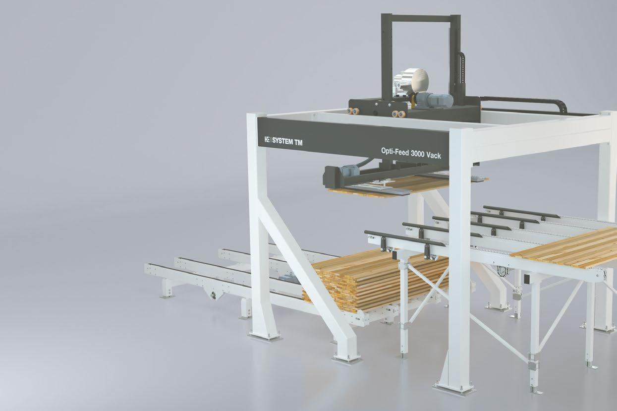 Opti-Feed 3000 Vack is a vacuum de-stacking unit for feeding complete or partial layers of workpieces into different main machines such as cross-cut saws, moulders, scanners, resaws and finger-jointing machines.