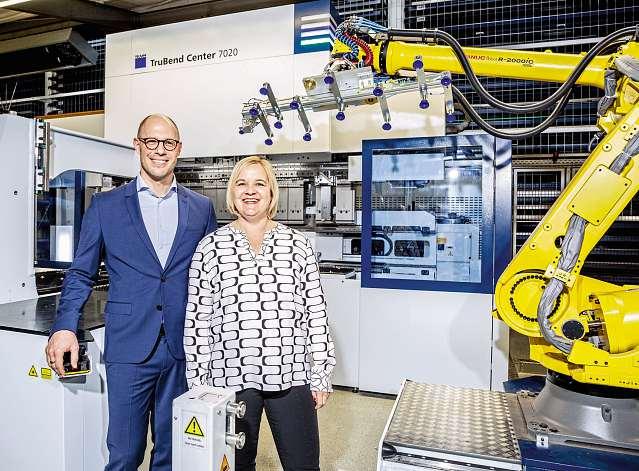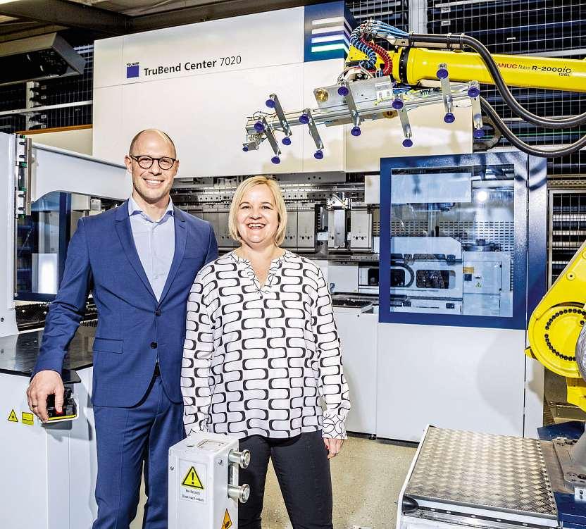 Im Herzen von Heidelberg haben Irina Autz (rechts) und Florian Friedrich (links) in sanierten Backsteingebäuden ihre Fertigung zu einem wahren Vorführzentrum für innovative Blechfertigung ausgebaut.
