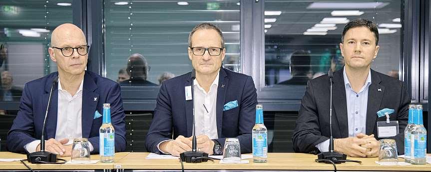 Reiner Kirschner (links) als scheidender Geschäftsführer mit seinem Nachfolger als geschäftsführender Gesellschafter Yannik Zecha (Mitte) und Stefan Zecha (rechts), der in der Geschäftsführung des Steiner Familienunternehmens bleibt.