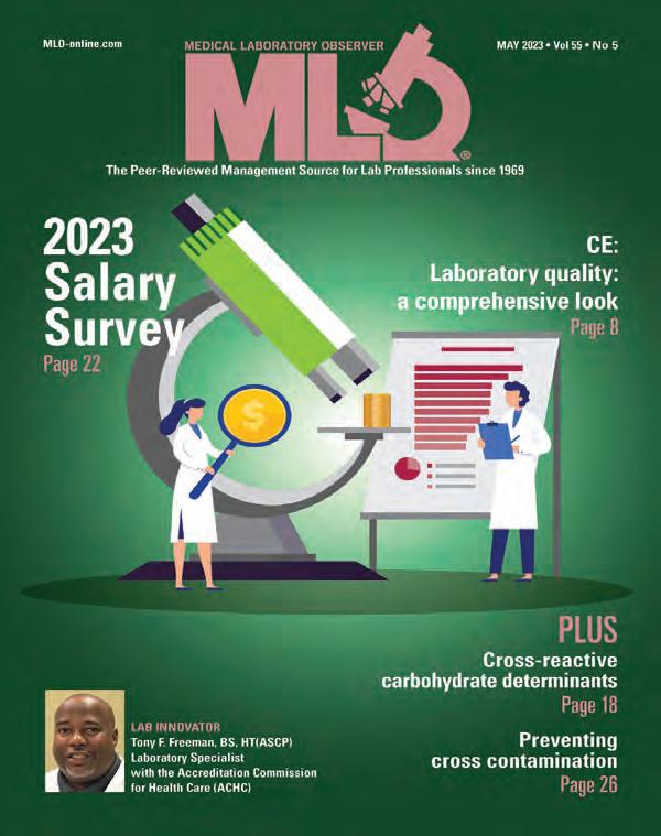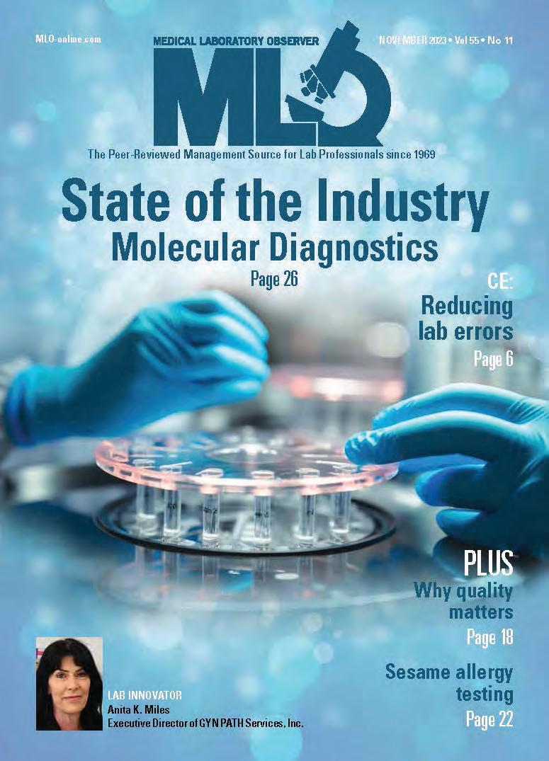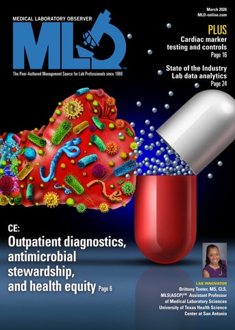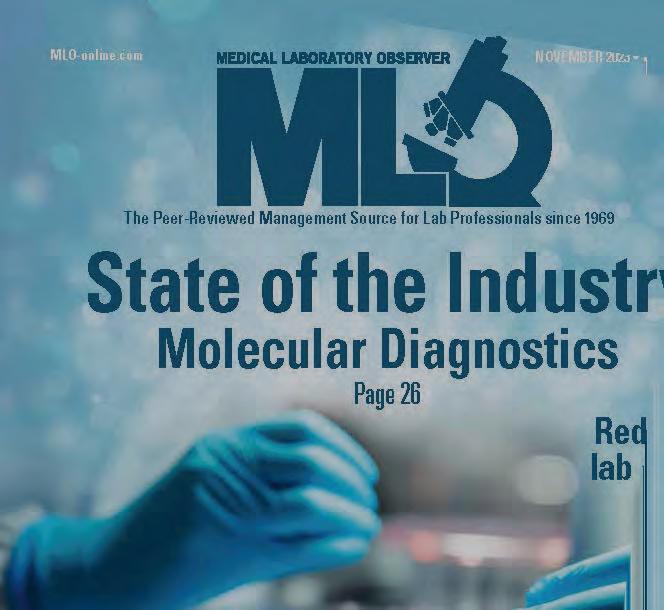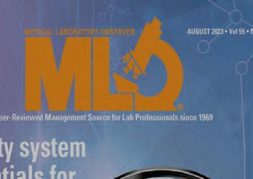 Medical Laboratory Observer USPS Permit 60930, ISSN 0580-7247 print, ISSN 2771-6759 online is published 10 times annually (Jan, Mar, Apr, May, Jul, Jul-CLR, Aug, Sep, Oct, Nov) by Endeavor Business Media, LLC. 201 N Main St 5th Floor, Fort Atkinson, WI 53538. Periodicals postage paid at Fort Atkinson, WI, and additional mailing offices. POSTMASTER: Send address changes to Medical Laboratory Observer, PO Box 3257, Northbrook, IL 60065-3257. SUBSCRIPTIONS: Publisher reserves the right to reject non-qualified subscriptions. Subscription prices: U.S. $164.80 per year; Canada/Mexico $199.56 per year; All other countries $284.54 per year. All subscriptions are payable in U.S. funds. Send subscription inquiries to Medical Laboratory Observer, PO Box 3257, Northbrook, IL 60065-3257. Customer service can be reached toll-free at 877-382-9187 or at MLO@ omeda.com for magazine subscription assistance or questions Printed in the USA. Copyright 2026 Endeavor Business Media, LLC. All rights reserved. No part of this publication may be reproduced or