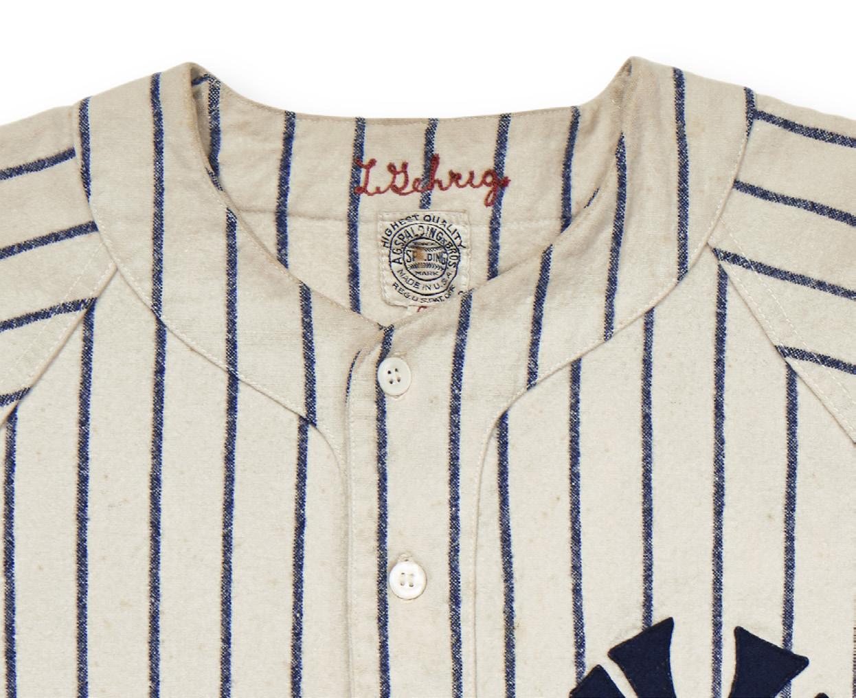 After Gehrig’s iconic July 4, 1939 speech he would remain with the team as their Captain for the remainder of the season often taking the lineup cards to home plate before the games. Fittingly, the Yankees once again played in the World Series soundly defeating the Cincinnati Reds with their ceremonial leader winning his final World Series. Given the public knowledge that Gehrig’s MLB career was coming to an end the newspaperman and photographers of the day documented what would be the final games in which Lou Gehrig would don a Yankees uniform. Several remarkably poignant images were among those documentations to include Gehrig posed at the top of the Yankees’ dugout longingly peering out to the field. Another series of photographs were taken posed with his longtime teammate Babe Ruth who had settled some personal discord during the ending tenure as players with the Yankees to be by Gehrig’s side in his greatest time of need. Within many of these images Gehrig is shown wearing a Yankees home uniform that would be the final of his MLB career. During the 1920-50s era it was common practice for Major League teams to send their game used uniforms to their Minor League affiliates for secondary use. As such, many of the uniforms of the greatest players in history would be removed from circulation by team affiliated officials, tailors, and others