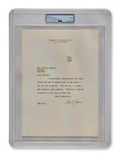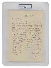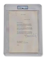 4 January 1960 dated letter handwritten on his personal stationary has been signed “As ever, Ty.” Content related to various health and treatment related matters and his treatment. Despite what was evidently debilitating back pain (along with other maladies), the doctors had allowed him travel “to receive to fine honor in New York…of being voted Ball Player of The Age.” Typical mailing folds and a touch of light wear. Authenticated and encapsulated by PSA with the autograph graded PSA/DNA 10 Gem Mint: Gem Mint